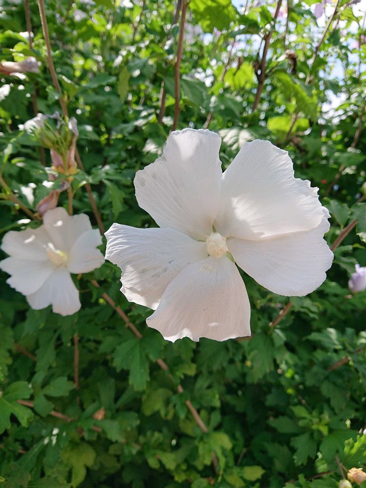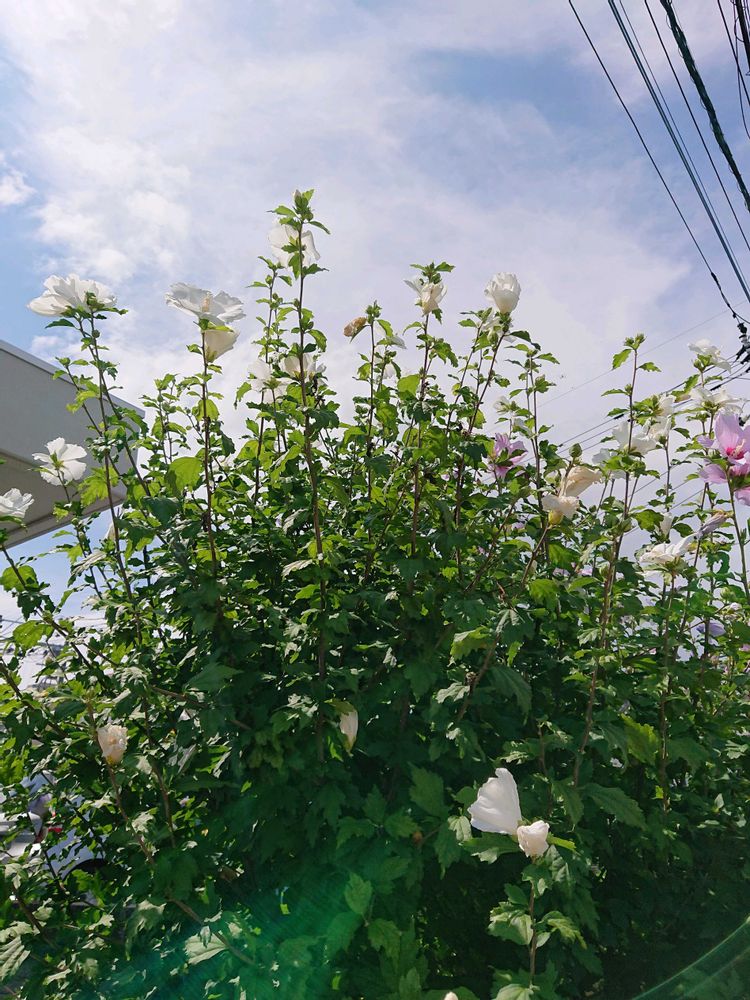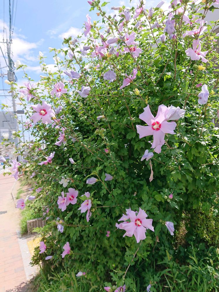 久しぶりに行った病院の前にムクゲが綺麗に咲いていました✨🤍💗日差しが強かったけど頑張って撮りました😀✌️