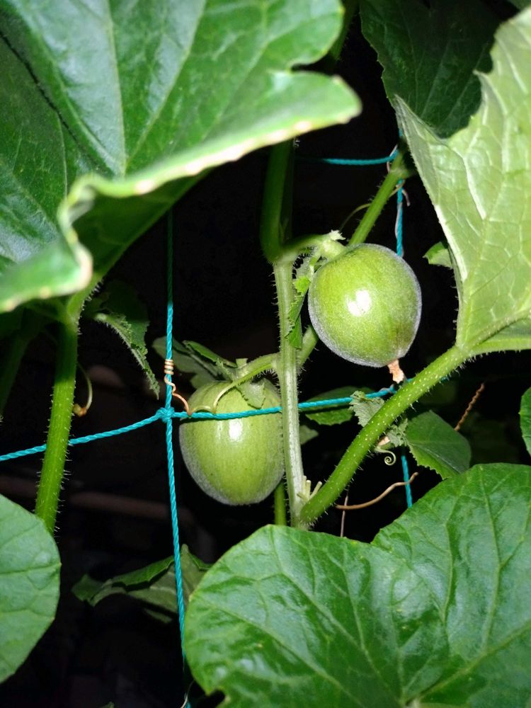 気候がおかしいので結実が難しかったけど無事にクインシーメロンと肥後グリーンメロンが実をつけ始めたよ(^_^;)💦