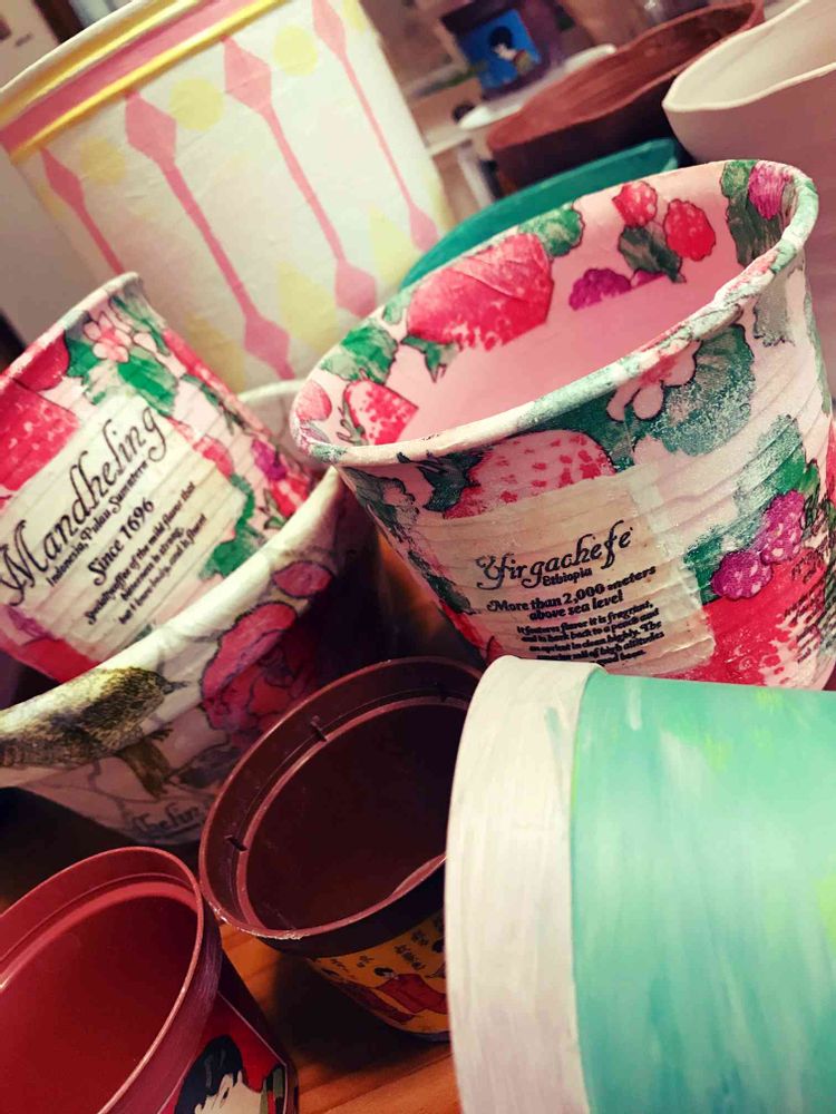 一輪車のサビペイントの練習でリメ缶作ってみたりプラ鉢に色塗ってみたりしてますが、なかなか難しいですね💦