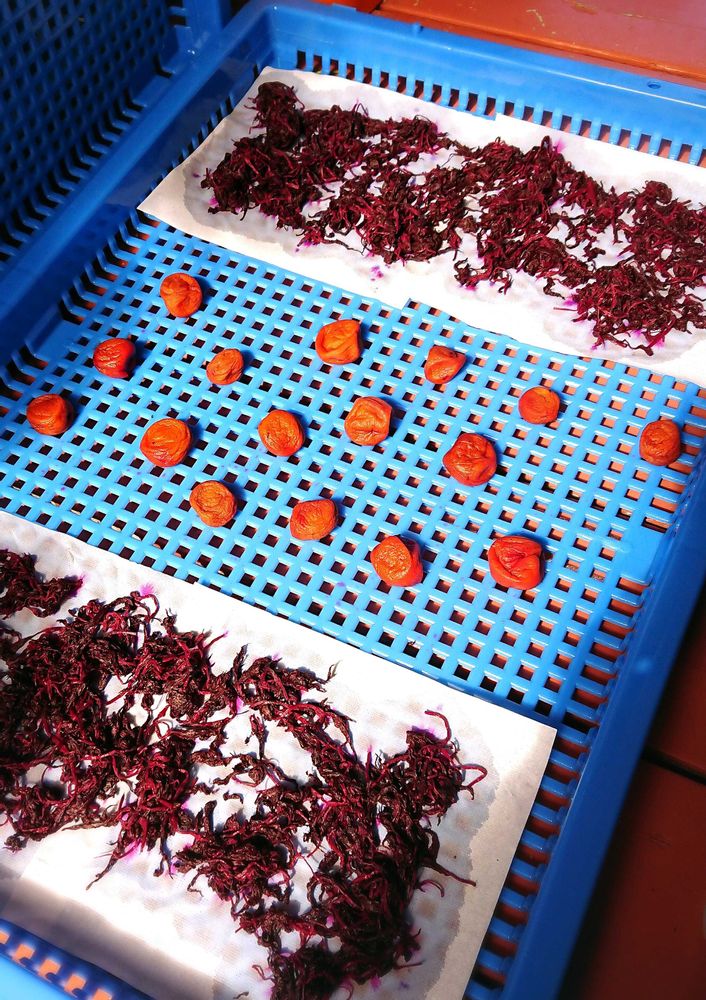 初めて🔰の梅干し( ̄* ̄)作り~梅雨が明けたので、今日から天日干しスタートです🎵5月に梅の実付きで、南高梅の木をご近所の方から譲り受けました❗使えそうな梅が16個しかなかったのですが初めて🔰なので充分です😁💕(笑)