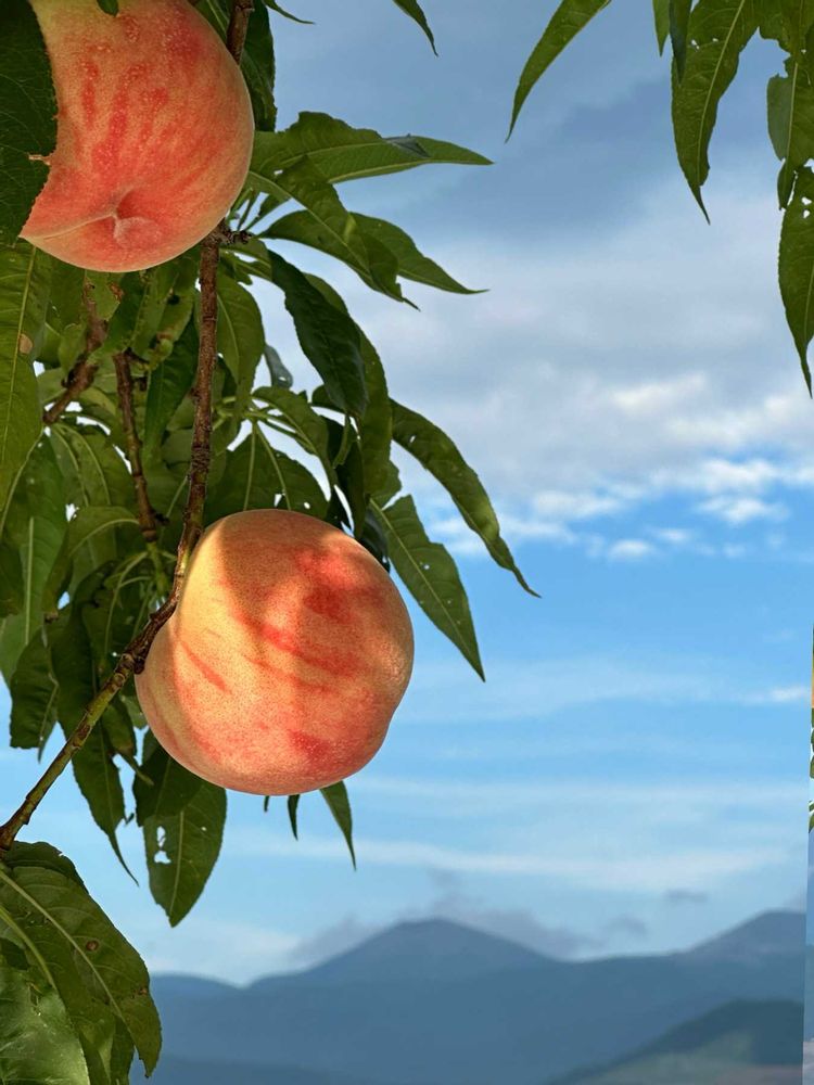 吾妻小富士をバックに撮られているのを見ていると福島の豊かな自然と桃がマッチしていて素敵な光景です✨