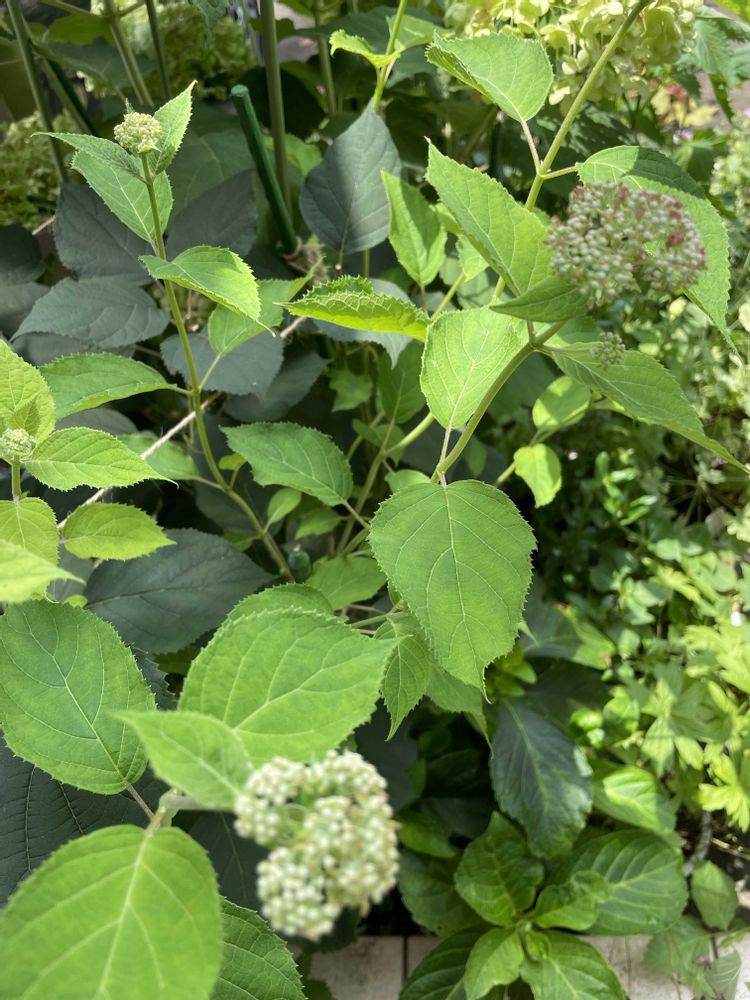 ⓶早めに切り戻したピンクのアナベルに再び蕾です♪
