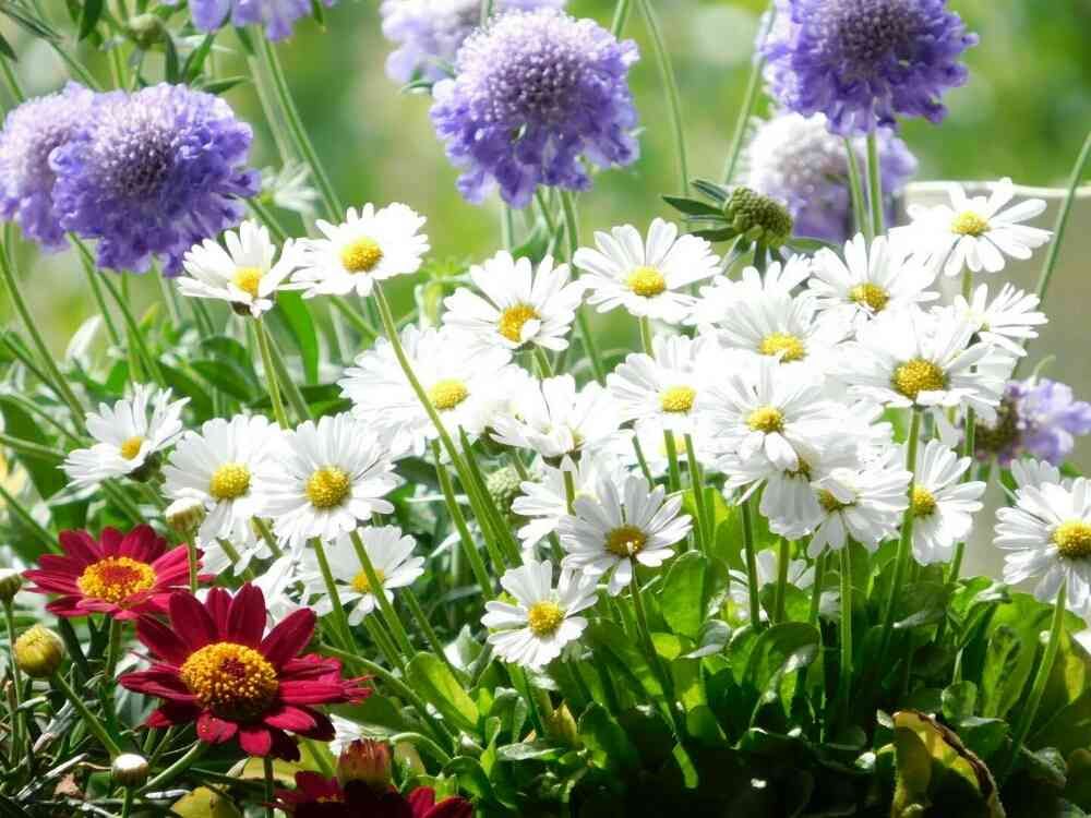 バルコニー/ベランダ,スカビオサ,イングリッシュデージーの投稿画像