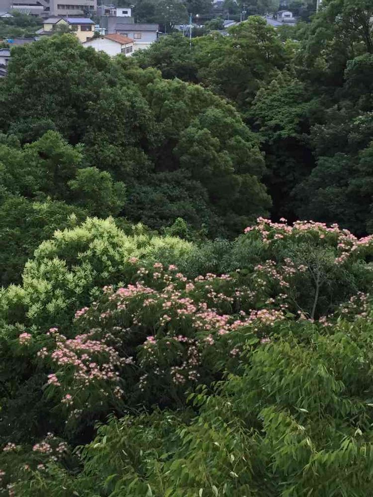 ベランダから見下ろすところにネムノキの花が(o^^o)