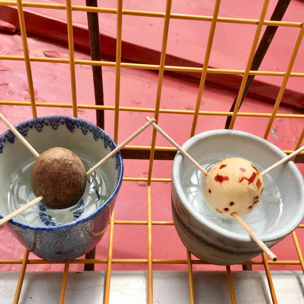 爪楊枝の位置を決めかねていたらボコボコになっちまった。