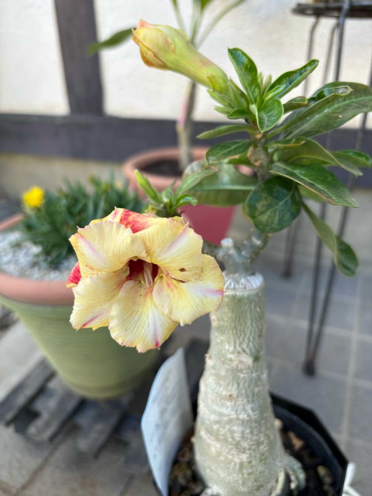 天空の薔薇といって アデニウムの一種です。今年も咲くことを願って育てていますが どうなることやらです😊