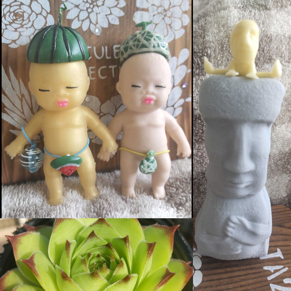 ストレッチするモアイ🗿のガチャ、探したけど無くて💦コネコネで作ってみたよ!
