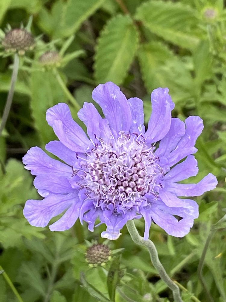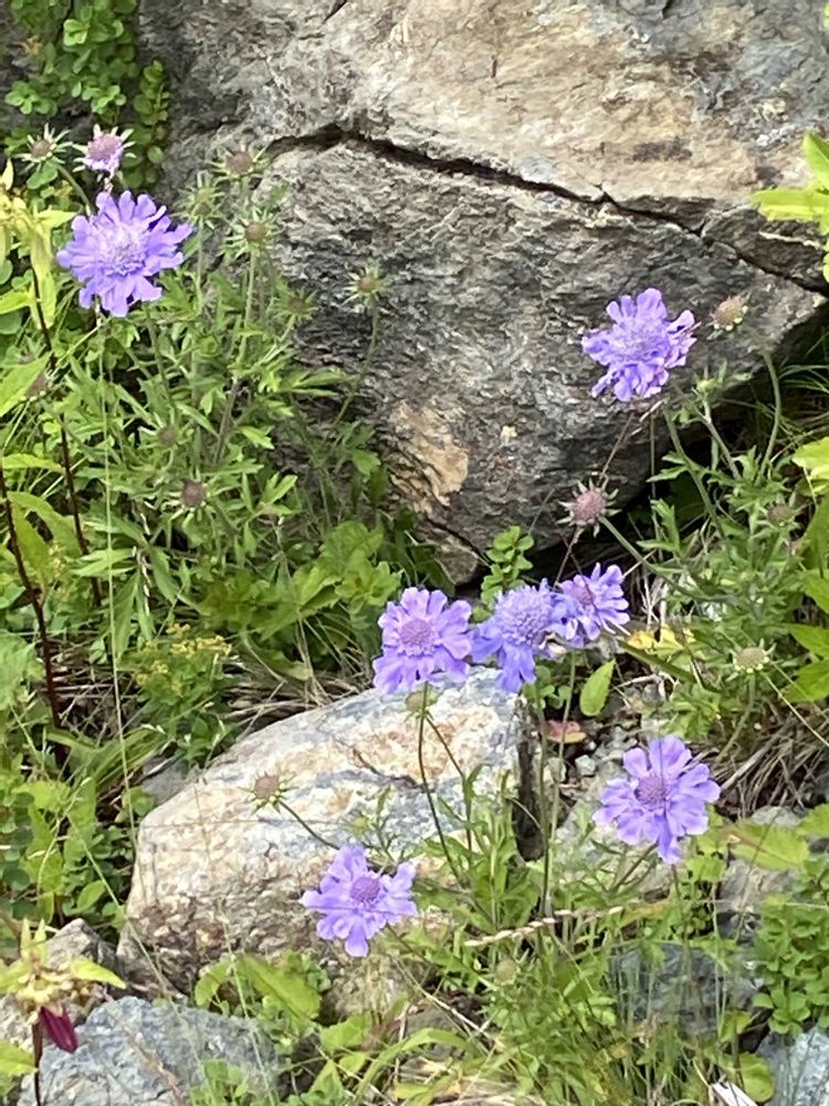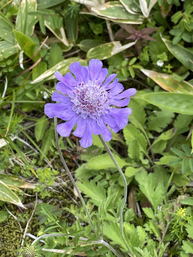 マツムシソウは割と見かけますが、これは高山型のタカネマツムシソウです。花の形や大きさはマツムシソウとほぼ同じです。草丈はマツムシソウの半分くらいの長さです❣️
