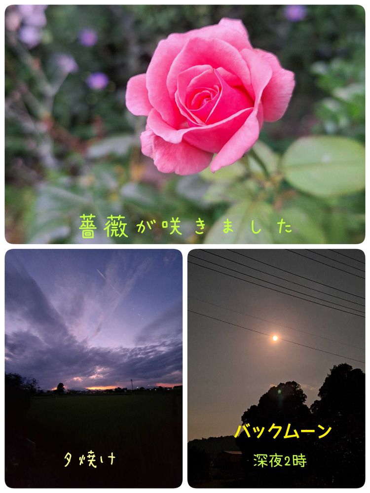 ✼·゚me-tan*.❁*さんの夕焼け,満月♪,ばら バラ 薔薇の投稿画像