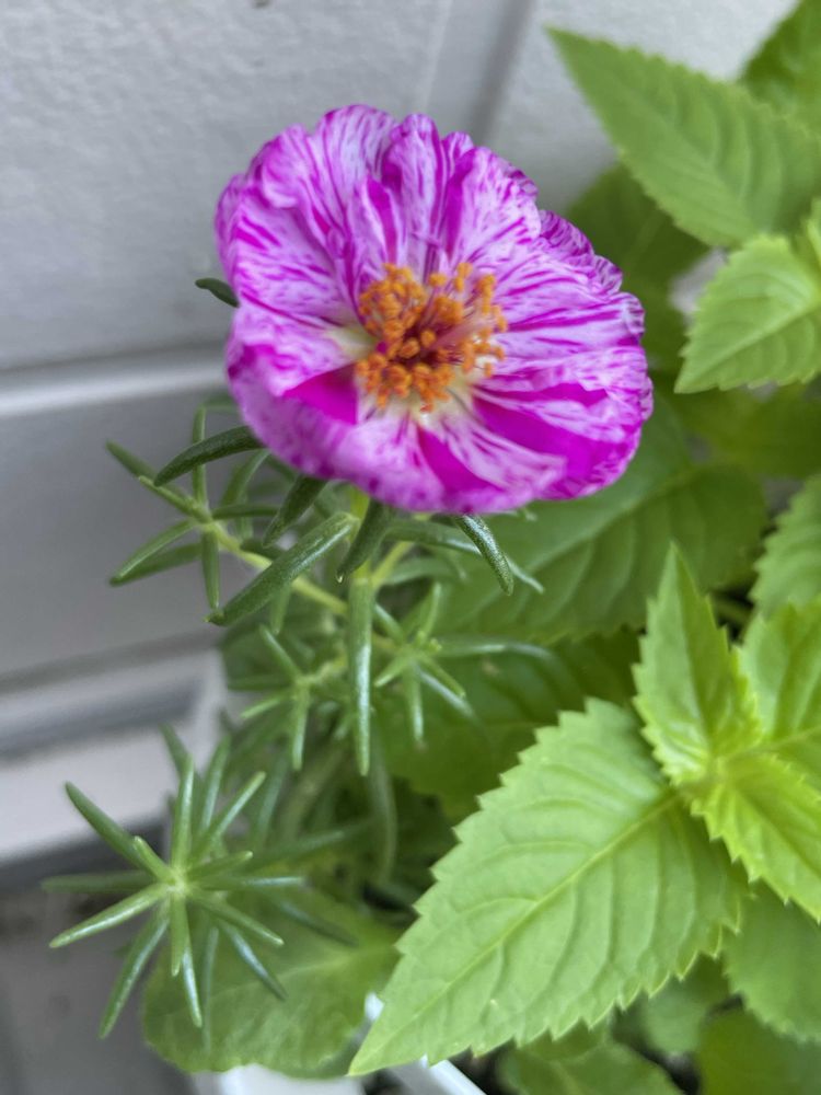 カンパニュラの種を植えたのに松葉ボタンがいつのまにか、、、その横はトレニア、昨年の写真を見返したらあり、種がおちてたのね🤗