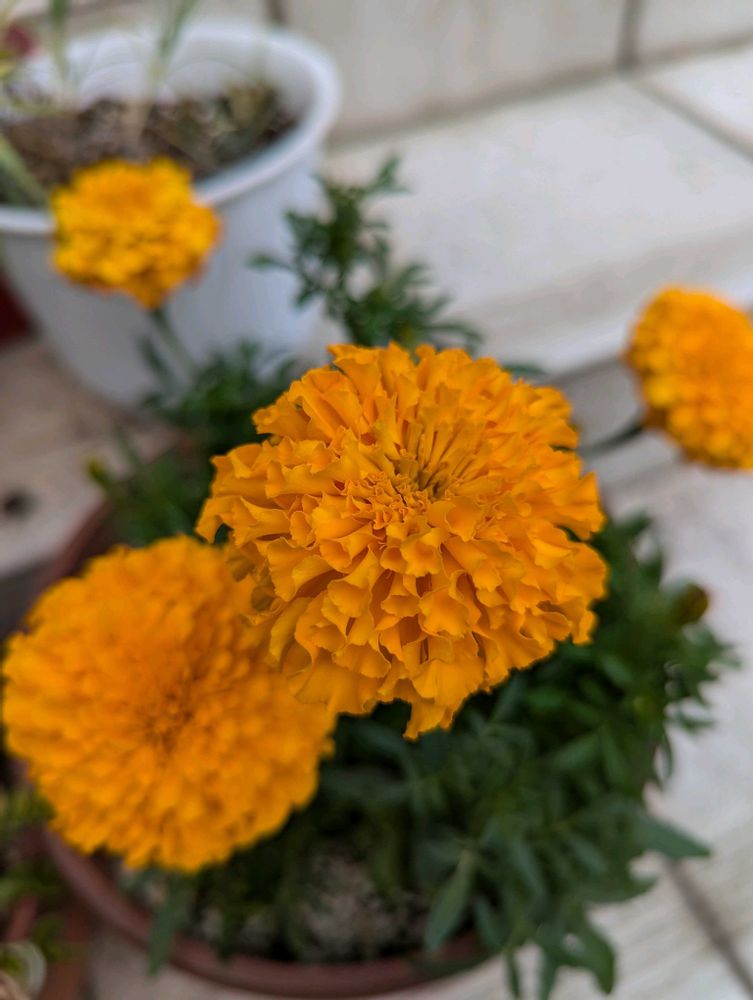 ポコンと可愛いマリーゴールド次々と咲いてます。