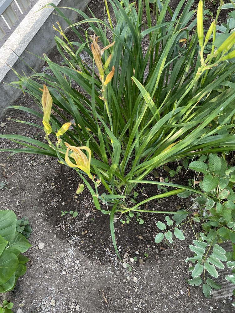 今朝のヘメロカリスは残念ながら開花なし。今ついているツボミたちもあまり元気がありません。
