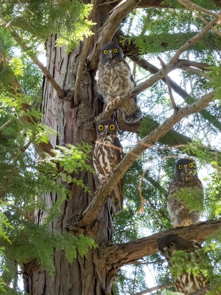 たまたまアオバズクのファミリーが4羽並んでいました😃