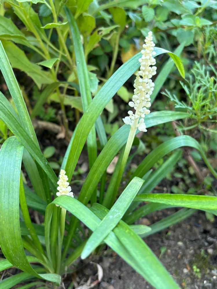 斑入りヤブランを30年近く前にご近所さんからいただき、我が家には紫の花が咲くヤブランしかありませんでしたが、2年ほど前にお迎えした白い花が咲くヤブラン。