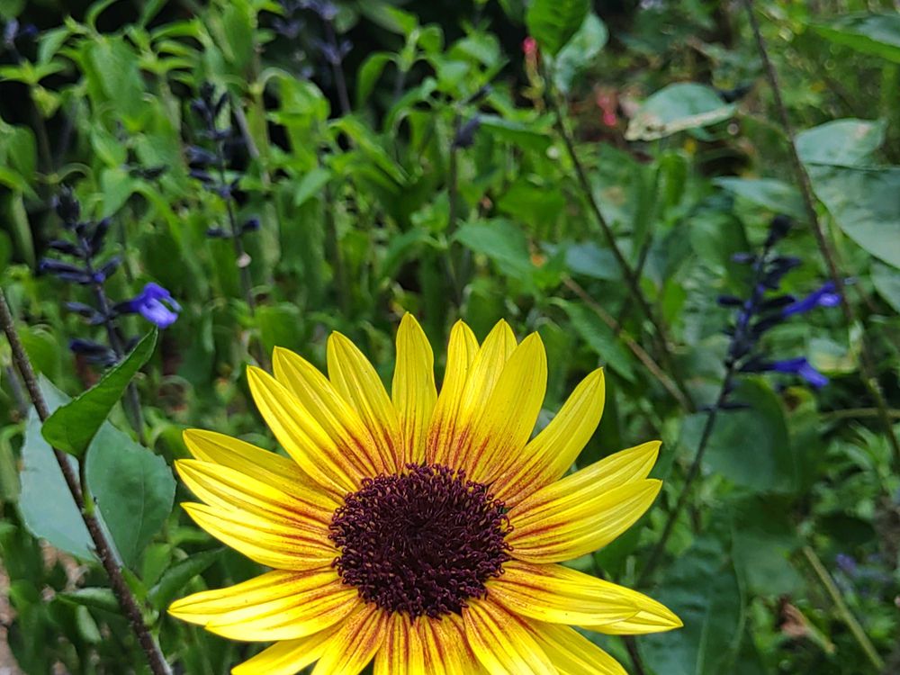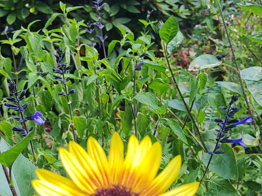 レモンガール🌻の後方に咲いているのは、サルビアロックンロールの“”trueBlue“”です💙💙💙