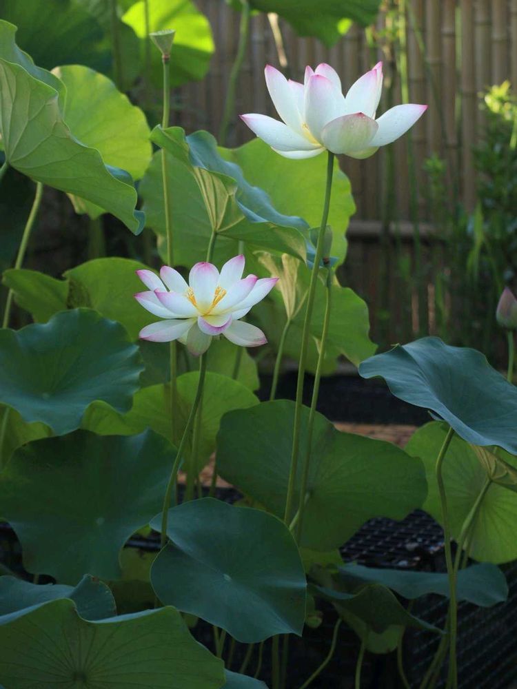 また咲いてます♪蓮根を手に入れたのは1年以上前、親株はピンクの花が咲く大賀ハス♪ しかし私はこの株に、一度もピンクの花を咲かせてあげられてません……