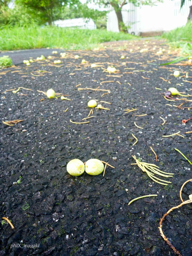 週末の台風は,猛スピードで通り過ぎ,雨はたいしたことなかった印象でしたが,風が強かったので,月曜朝に出勤してみるとキャンパスのイチョウの木の下には沢山もぎ取られてしまった実が落ちていました。