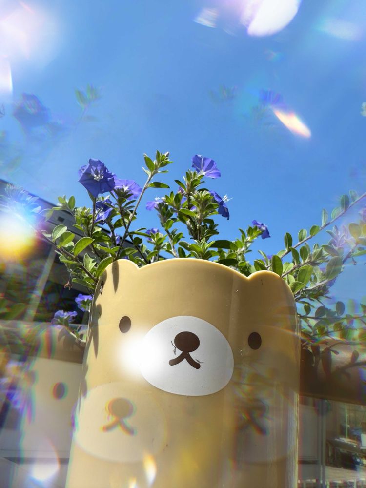 1枚目のくまちゃん🐻プランターのお写真📷✨、プールの中から写したような…💧、キラキラしてとっても可愛いく写っていますね〜🥰🍀
