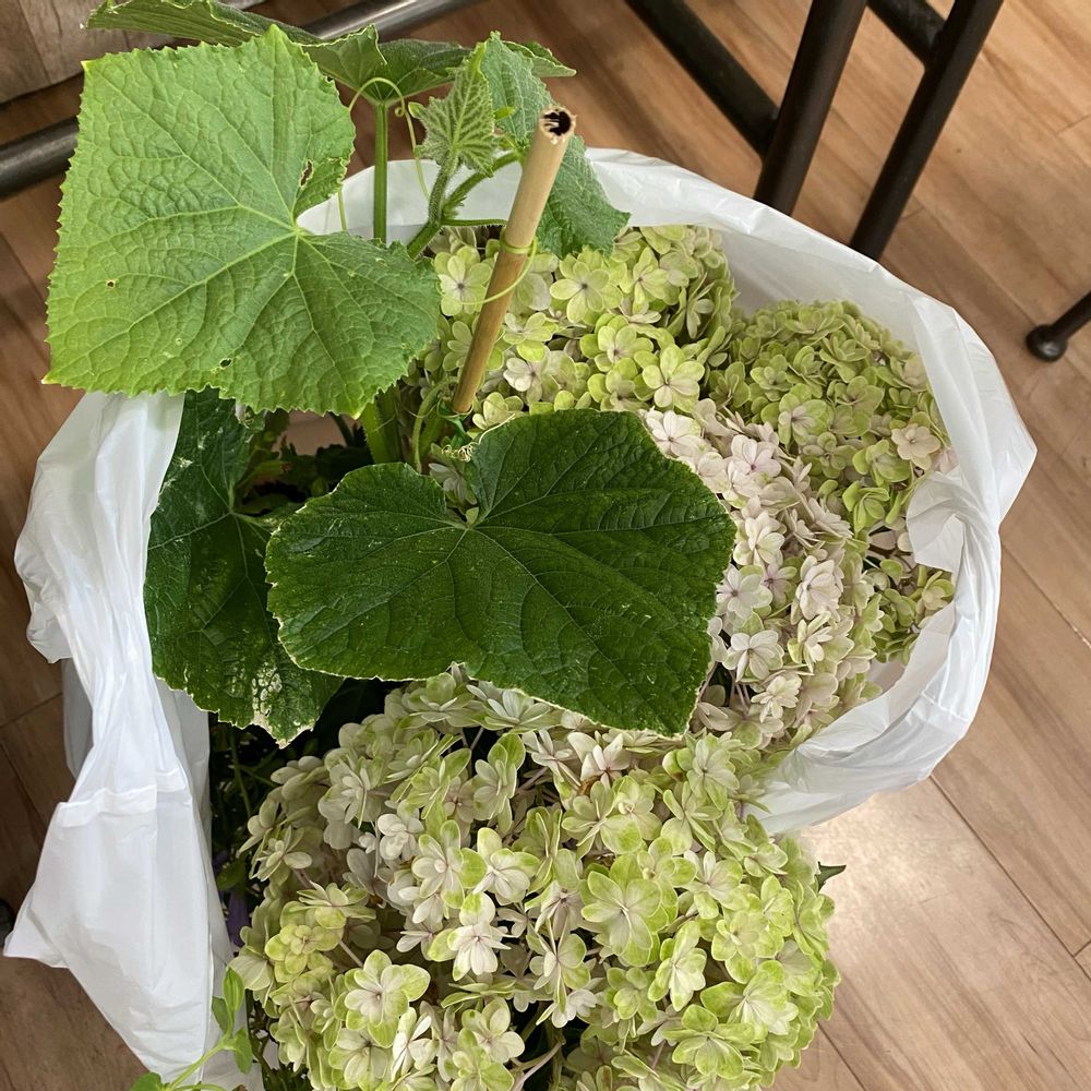 キュウリ 夏すずみ,アジサイ・テマリテマリ,スーパートレニア・カタリーナブルーリバーの投稿画像