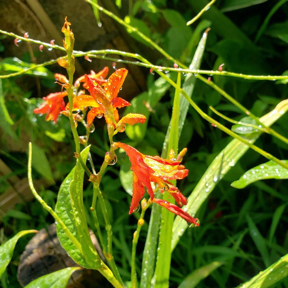 和風のお花達、頑張って健気に咲いているのですね🩷🧡🤍💜💚