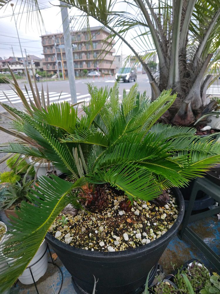 朝から晩まで直射日光のソテツちゃんは、今夏2回目のフラッシュ🌱⤴️⤴️