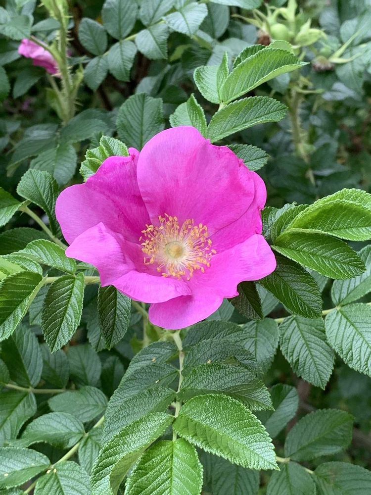 初めて見たのは夫が北海道に転勤した時、海岸に咲いていたハマナスです。