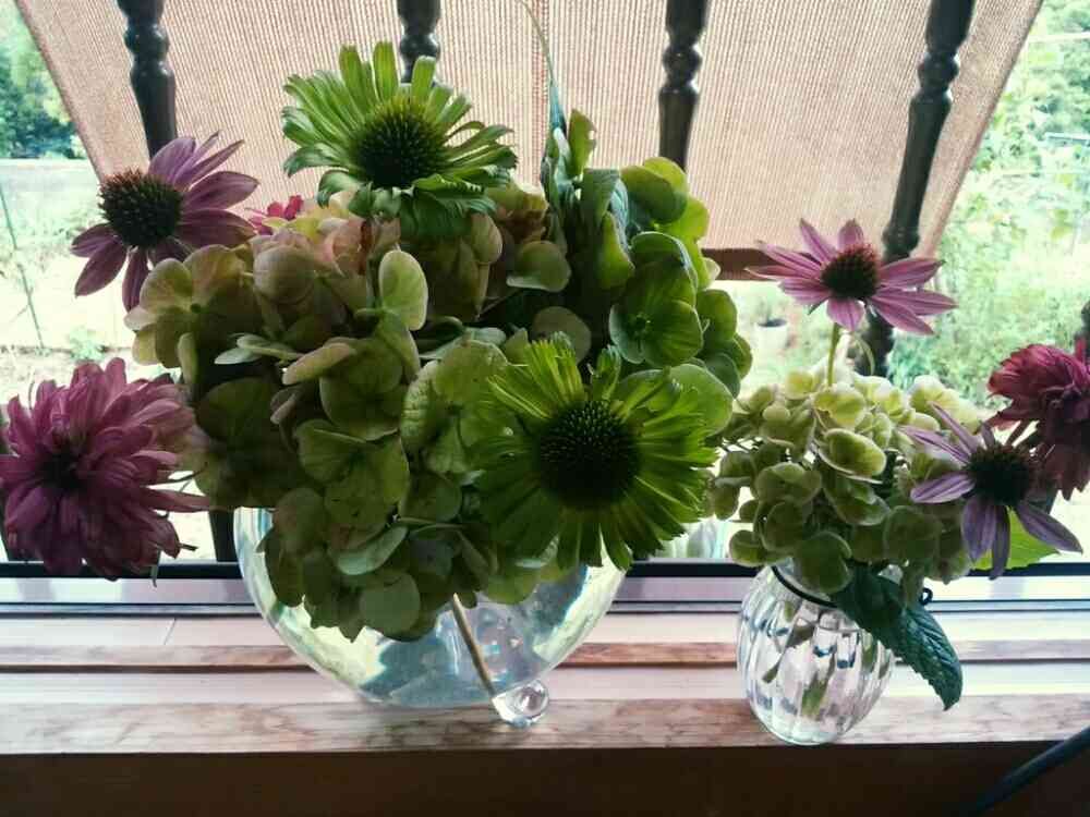 カットした花をガラスの花びんにポイポイポイポイッ(-_- )ノ⌒