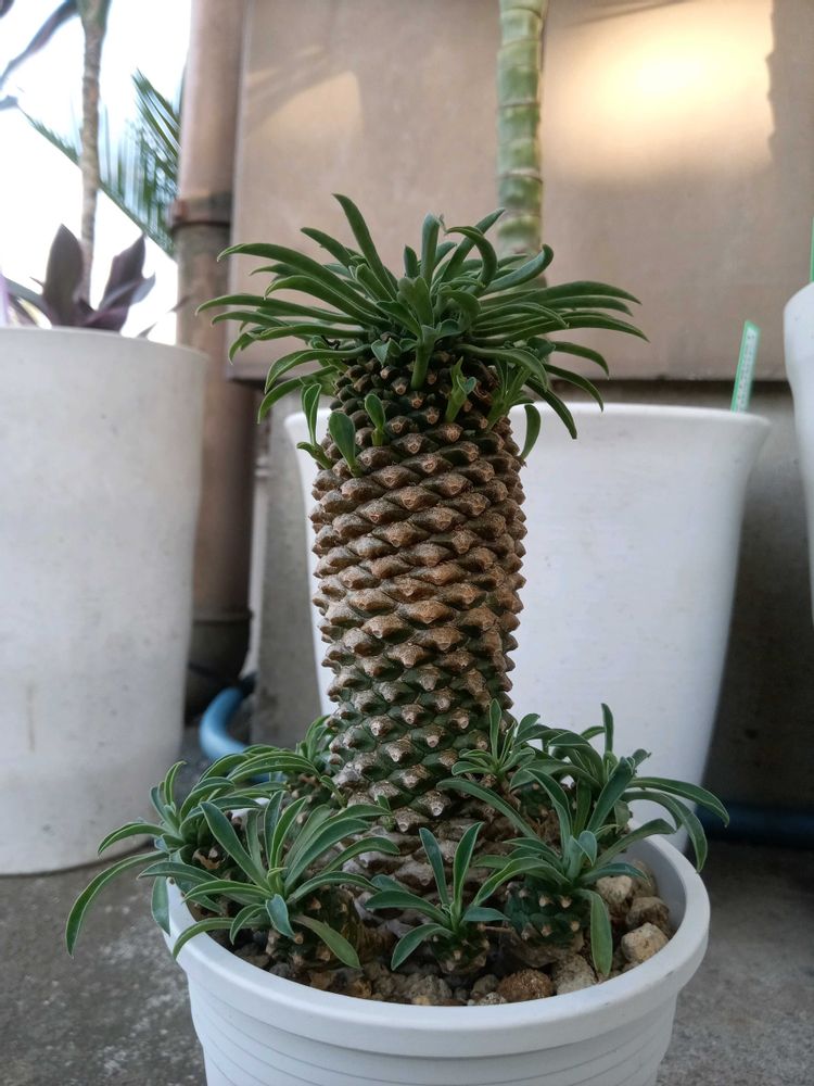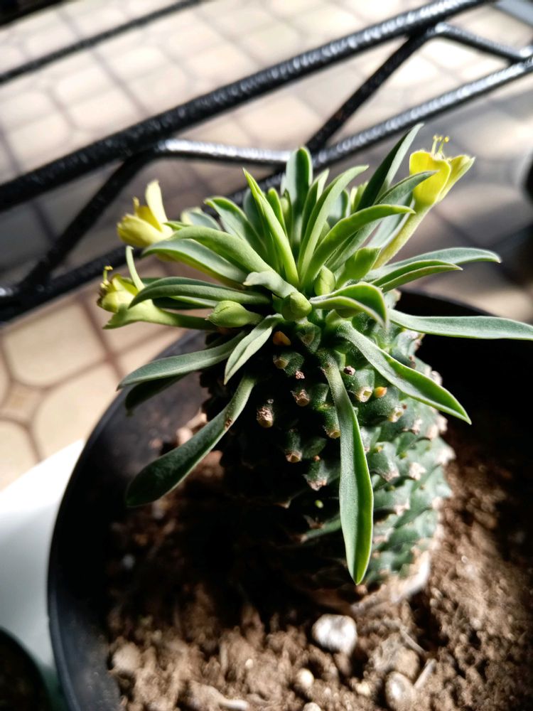 蘇鉄麒麟、用土悪く根腐れ起こしてたけど植え替え後花芽着きました。