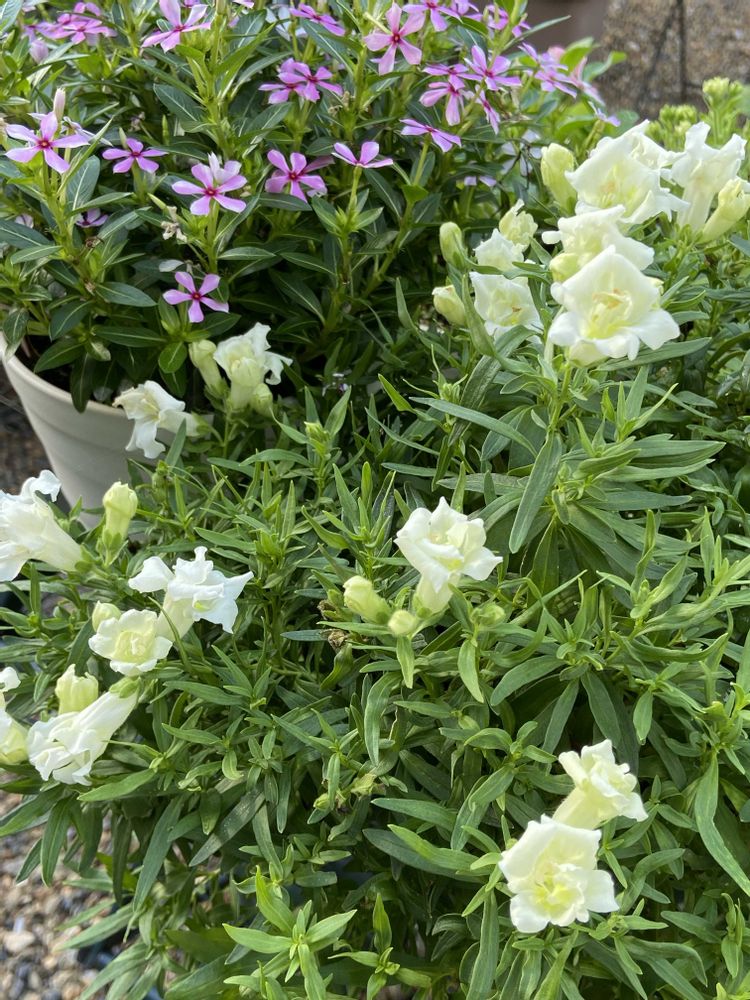 この白いのは、この猛暑の日向でバンバン蕾をつけだした。どの植物がうちの環境に合うかは、やってみないとわからんですね。