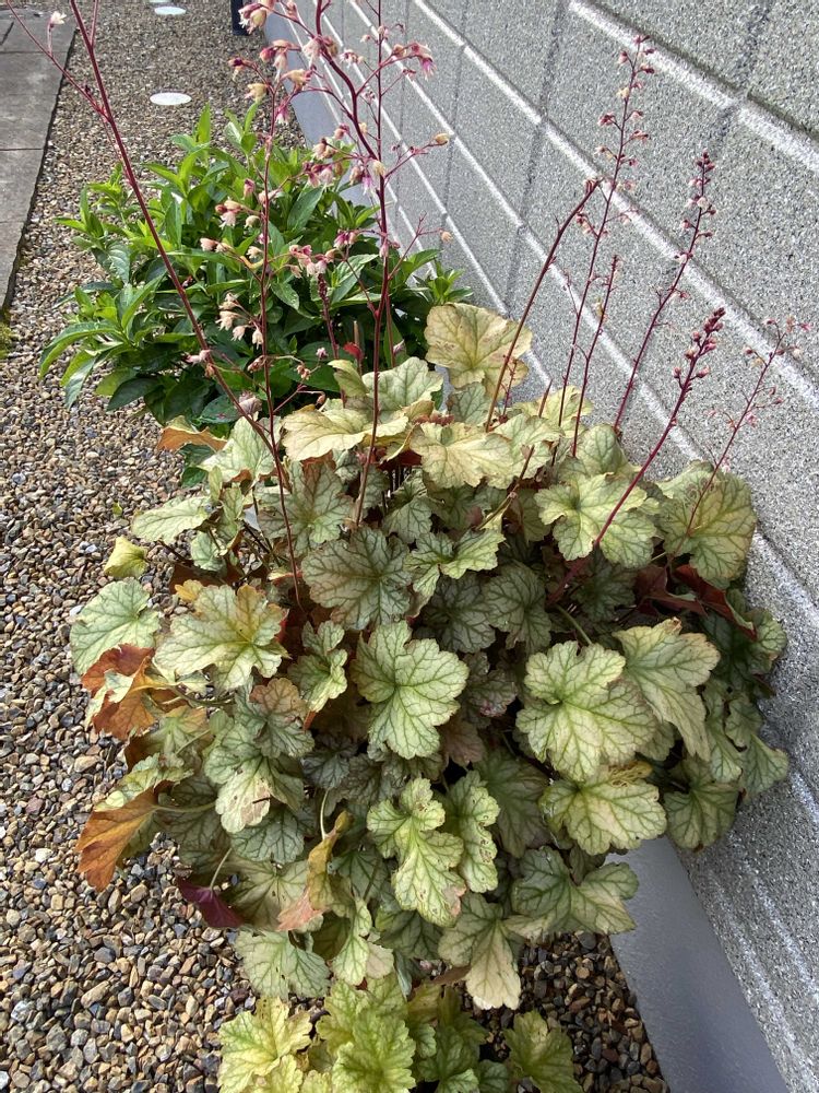 一方、2枚目。ヒューケラも紫陽花も、毎日葉っぱの焼けこげがひどくなるので、もう無理と悟り、家の北側に移動。早朝から十鉢以上動かして、いい運動…。さあ、今日の強烈な日差しに耐えられるか?
