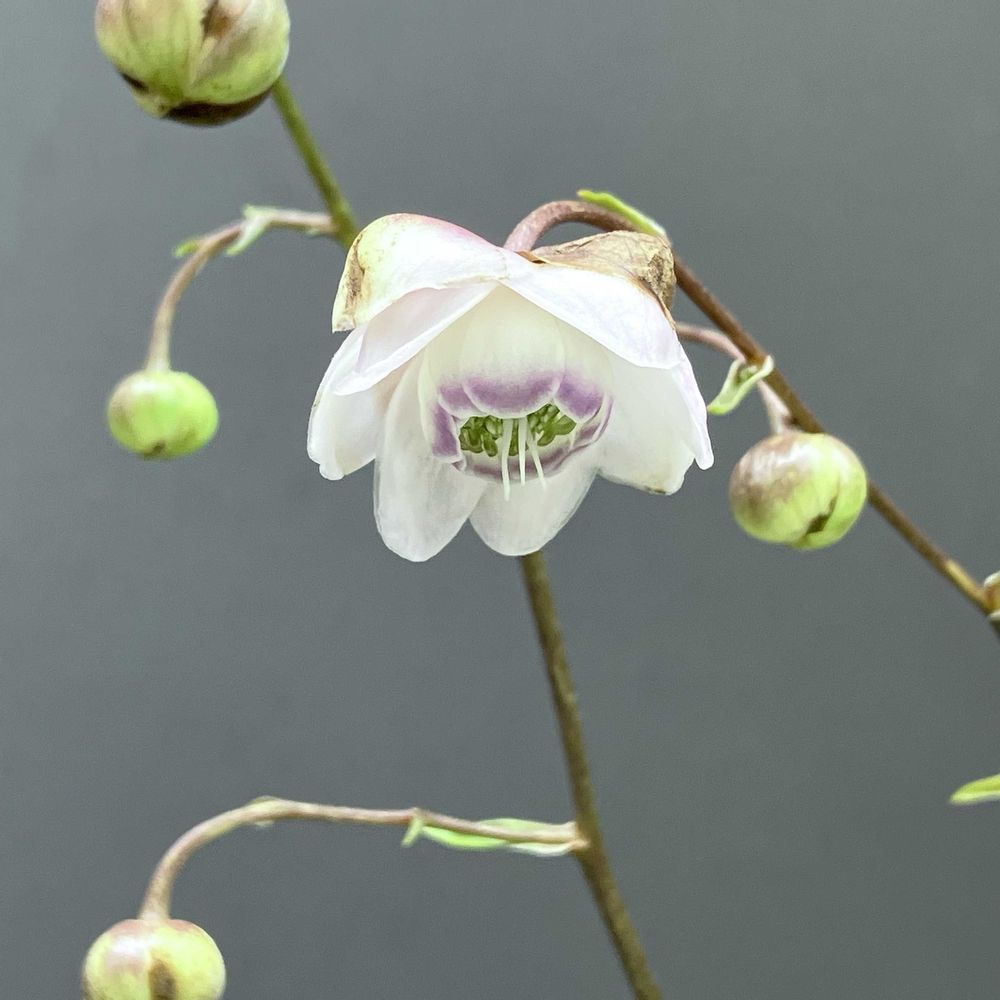 レンゲショウマは木漏れ日の中で育つ植物なんですが、わが家の灼熱コンクリ庭でなんとか咲いてくれました💦