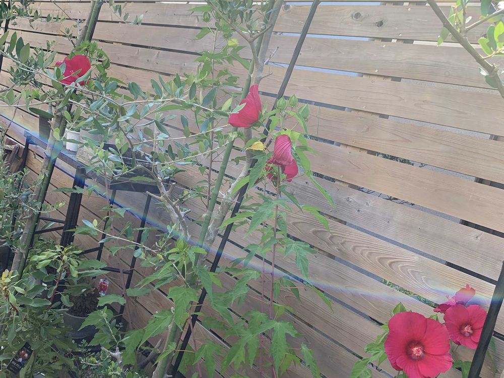 アメリカ芙蓉🌺夏のお花の少ない時に、この赤は元気でます😀暑いし外にらなかなか出れないけど(笑)