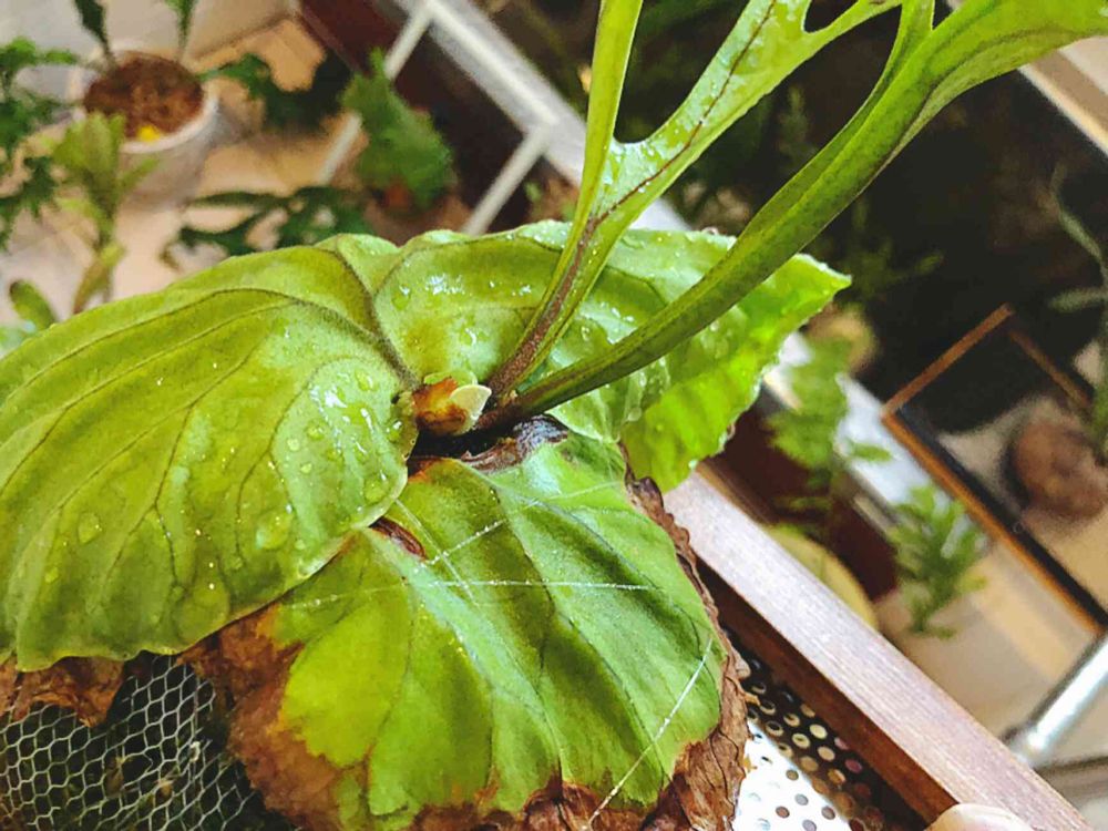連日の異常な暑さに生命の危機を感じたのか 生長点からまた貯水葉が‼︎(*´Д`*)