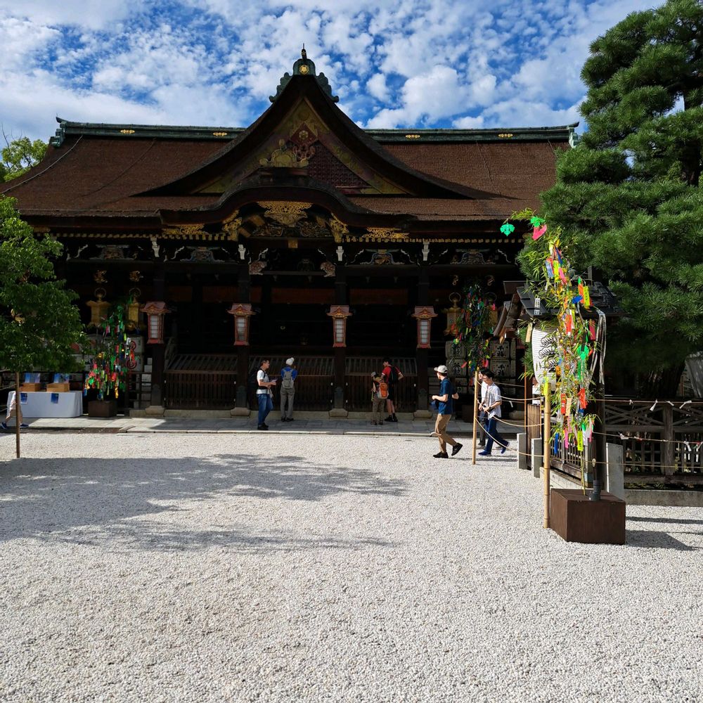 京都北野天満宮へいってきました 大鳥居をくぐって参道を真っ直ぐ進むのと思いきや左に折れてまた右奥に本殿があるのですね とにもかくにも菅公を祀るにふさわしい大きくて幽玄なる社でした 少しは頭がよくなったかな?