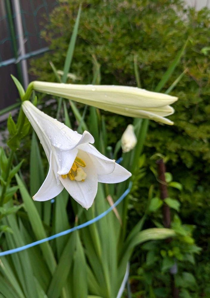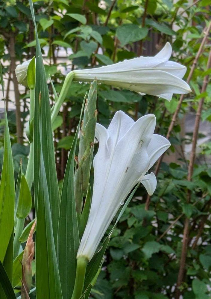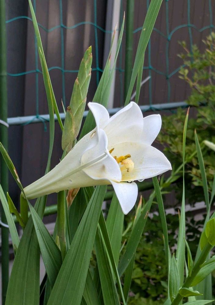 暑い夏、グラジオラスの葉っぱの間から顔を出す、真っ白で清楚な゙お花に癒されます。💚