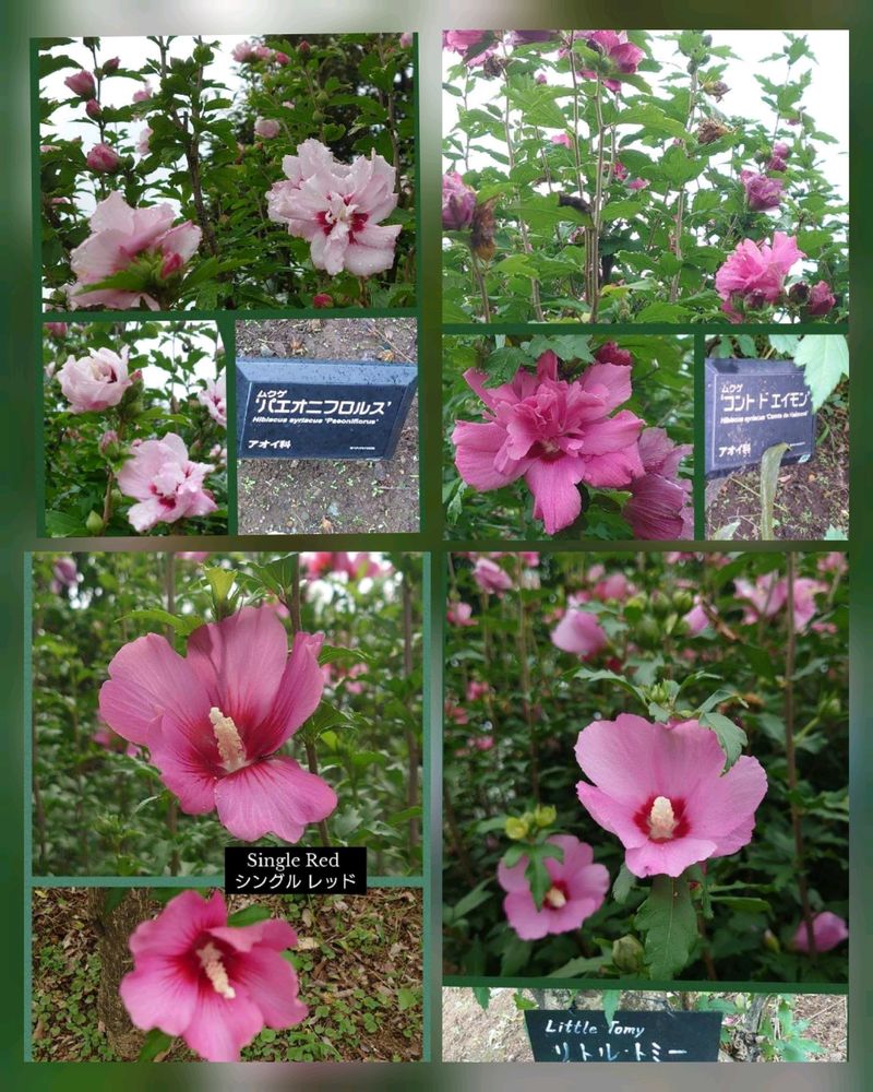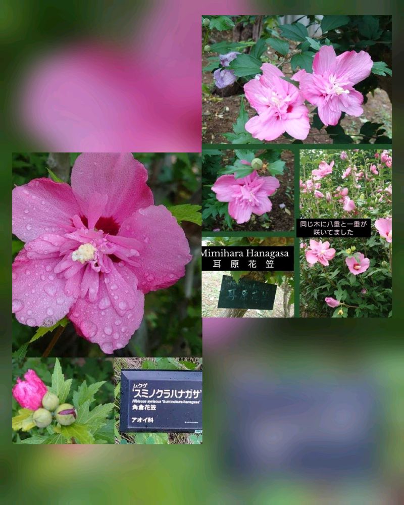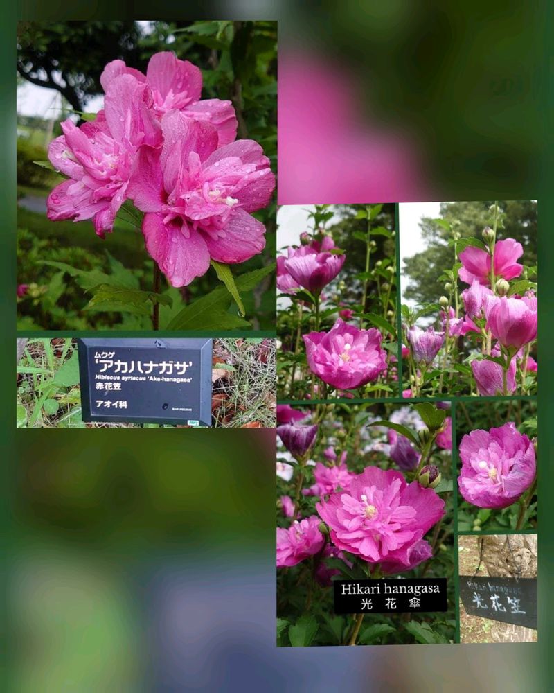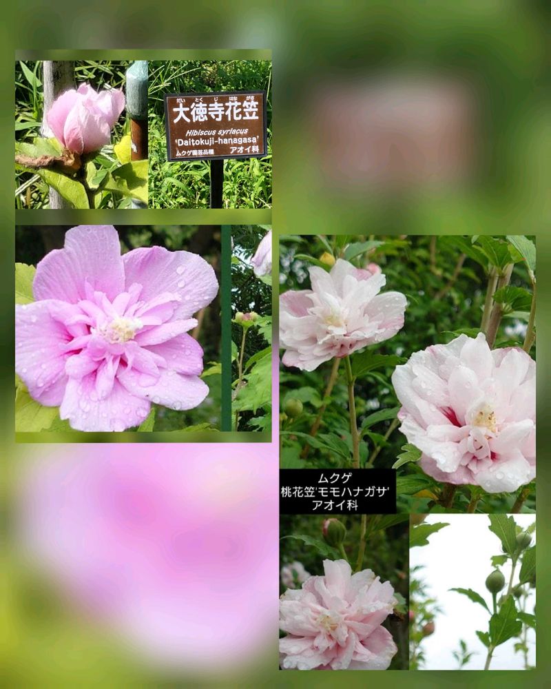 【〇〇花笠】と【花笠】が名前に付く八重咲きのムクゲと、カタカナ名前のムクゲ。