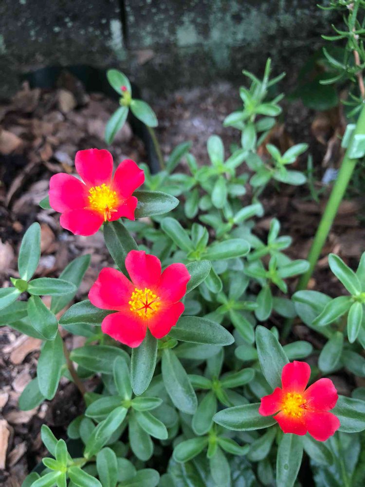 花壇のあちらこちらに、零れ種からポーチュラカが咲いてます😍