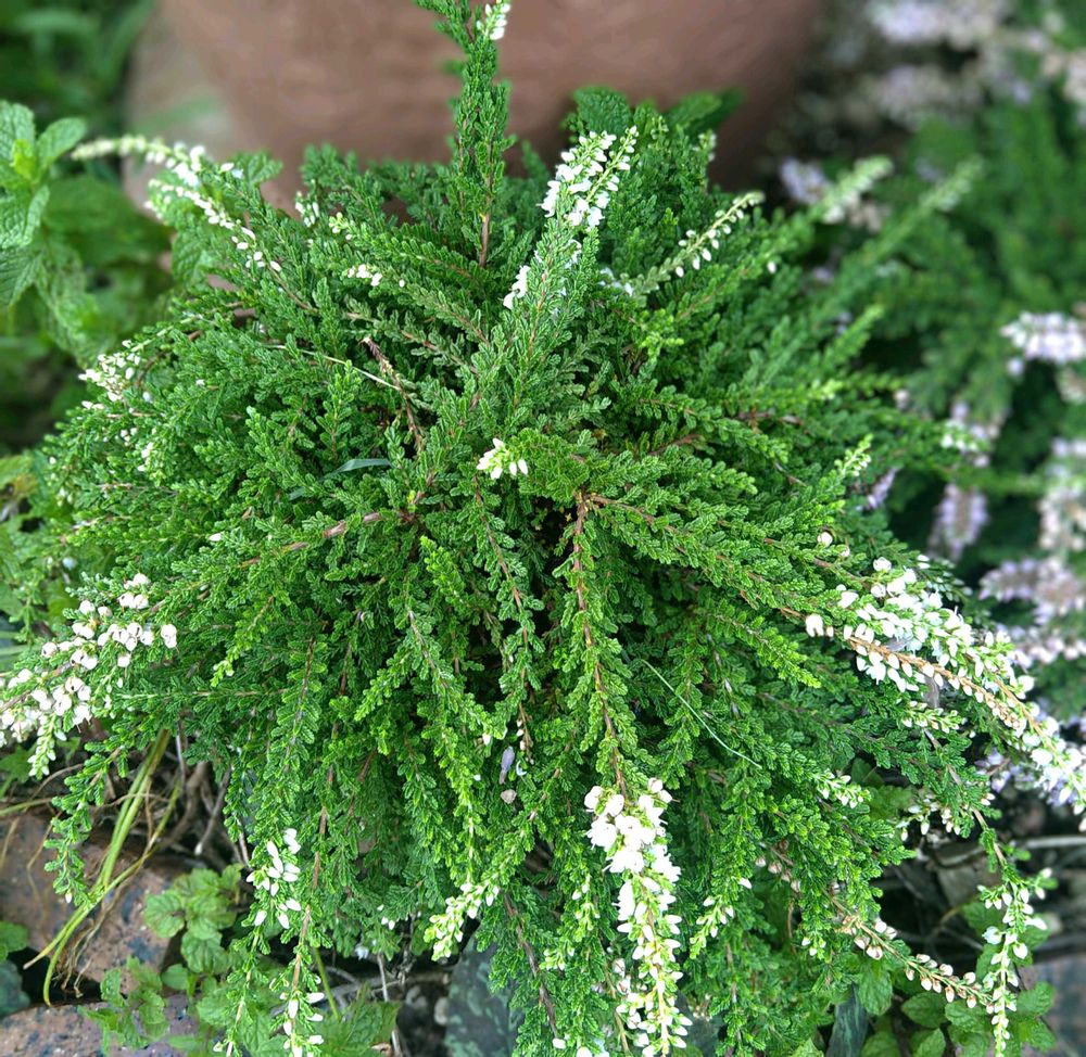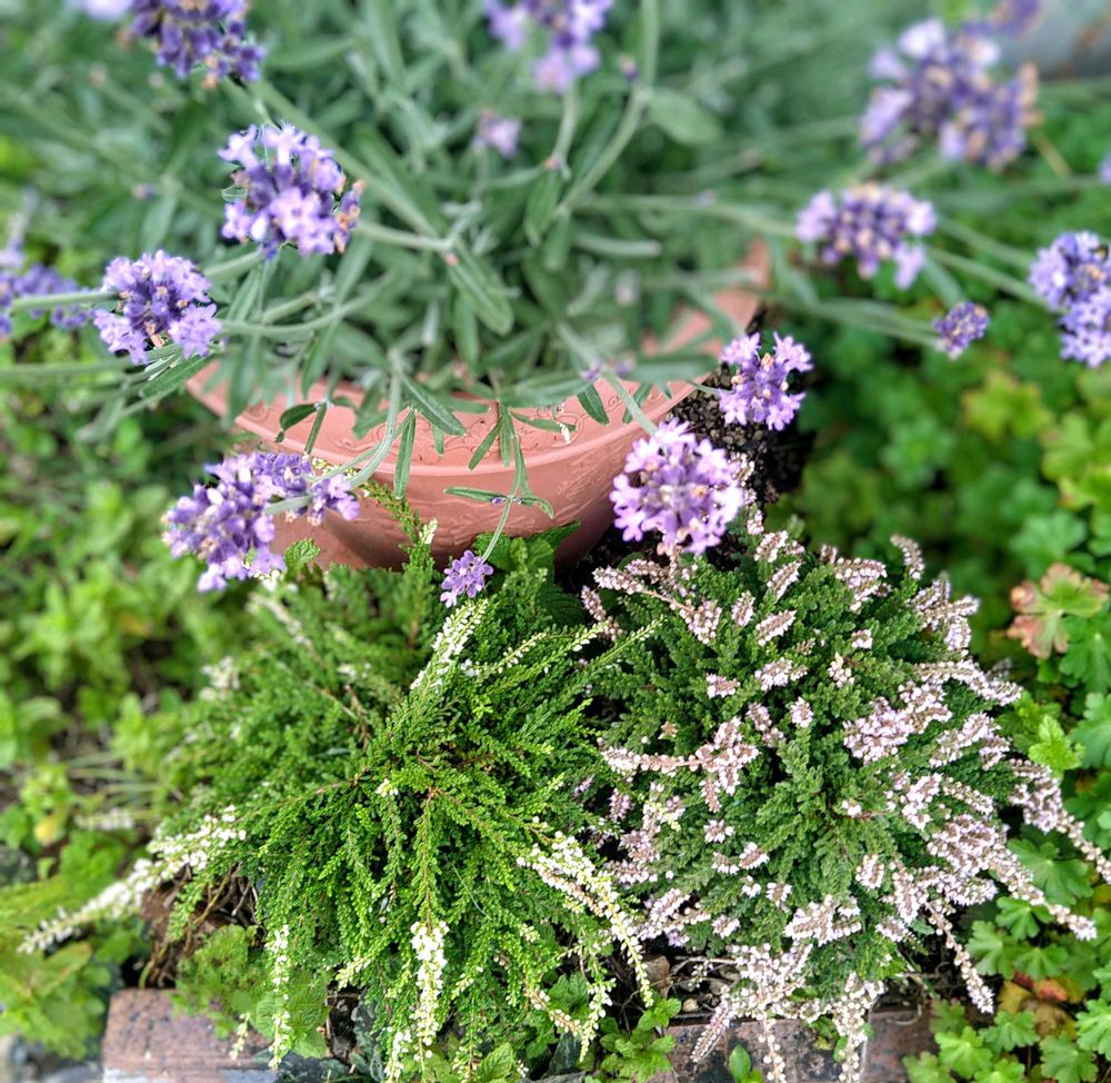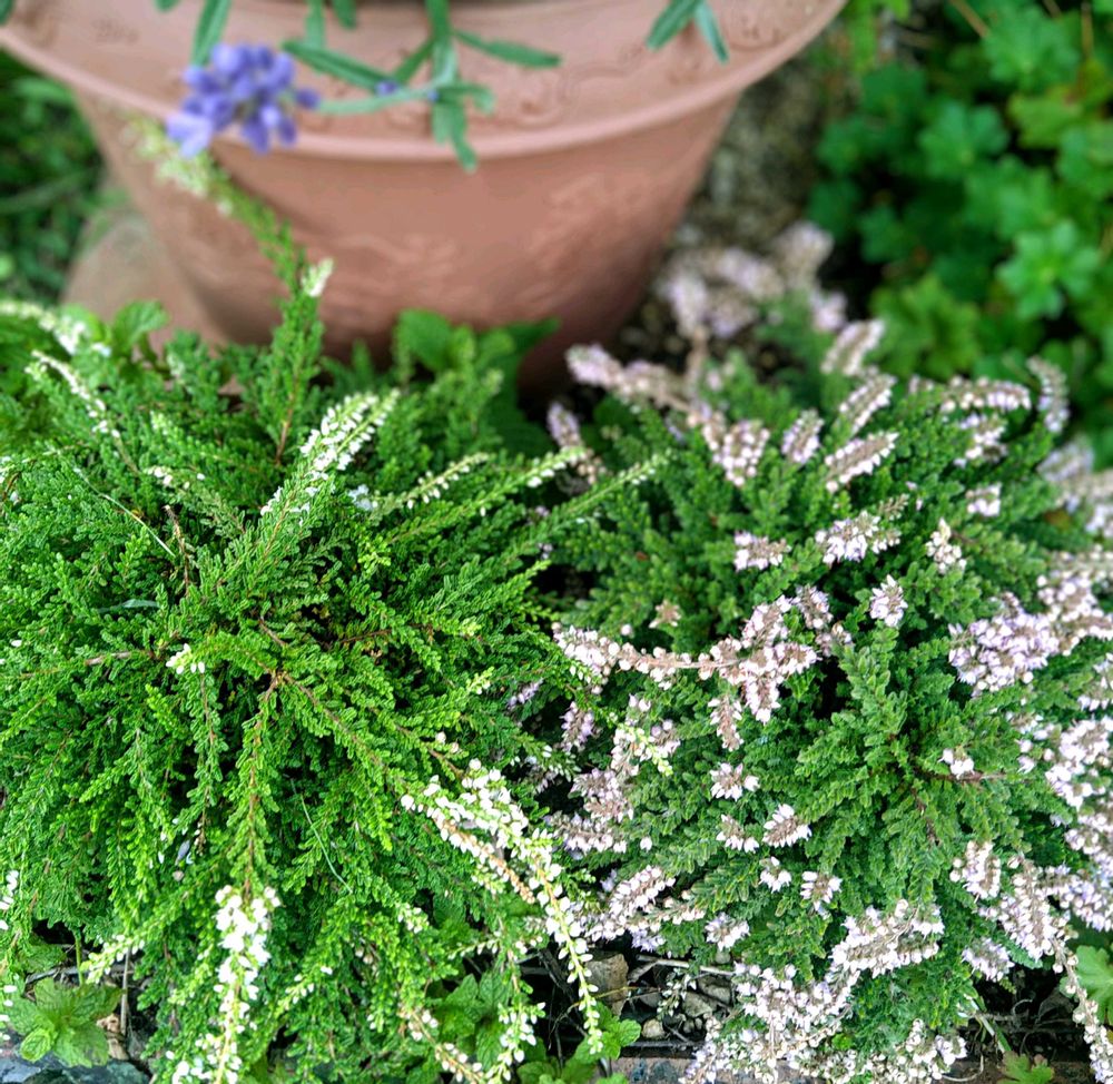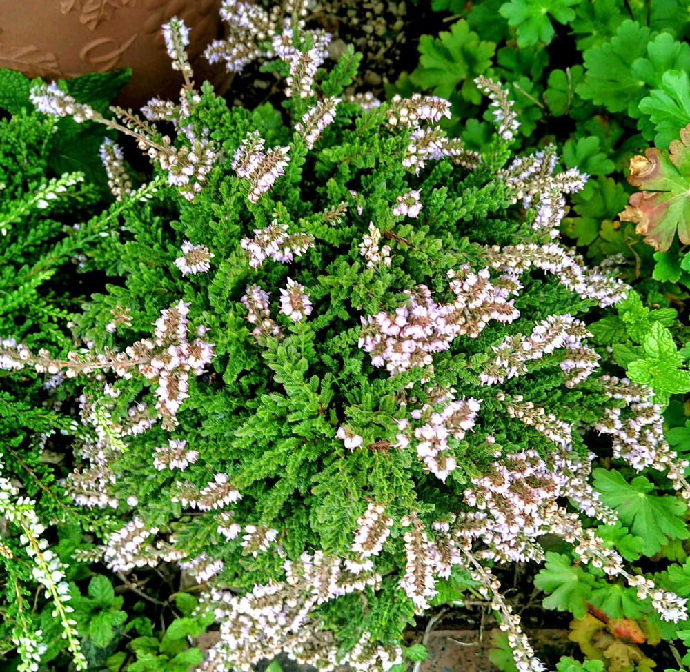カルーナ・ブルガリスさん、ハーブのような可愛らしいお花ですね🤍🩷 後ろに紫シリーズ 継続中ですね💜👏
