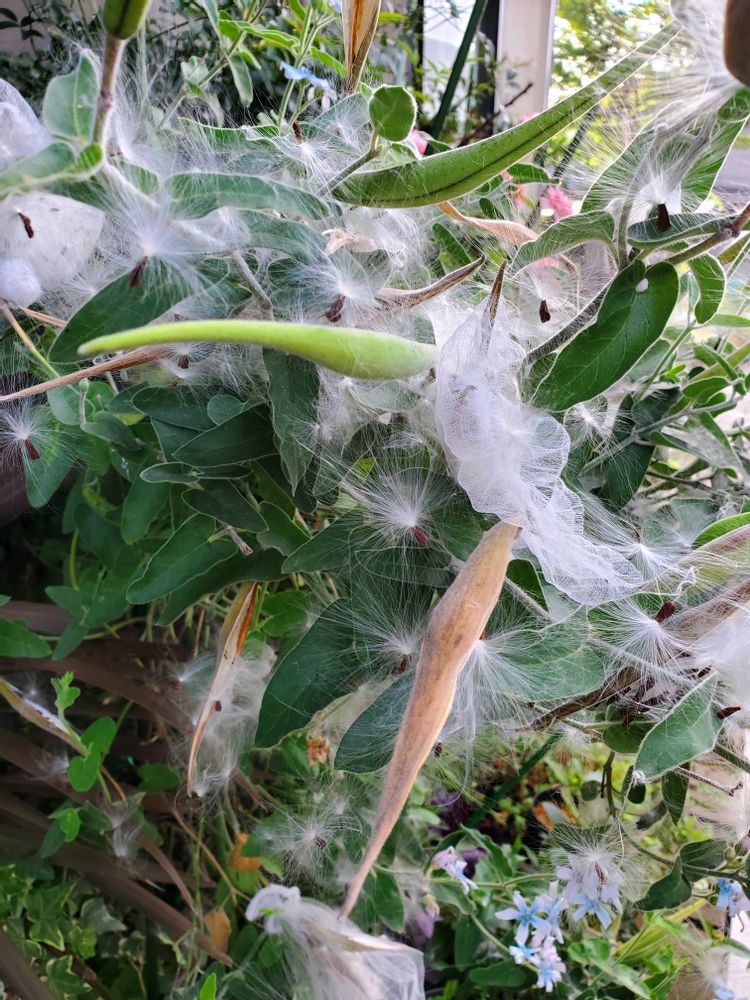 こんにちは我が家のブルースター一つサヤ付けています種取り方しりませんでした⁉️さっそくネット掛けてみますその後教えて貰えば嬉しいです✨