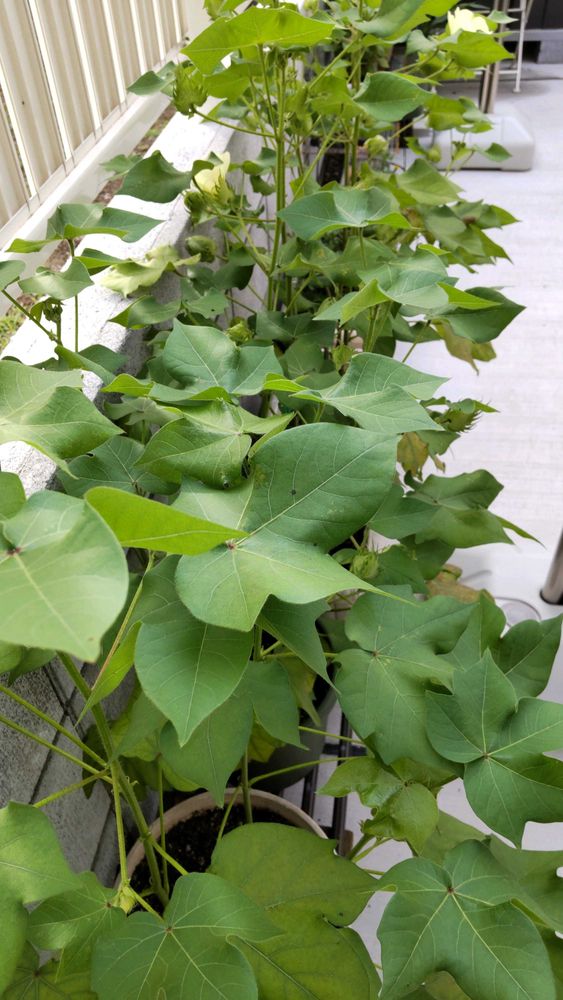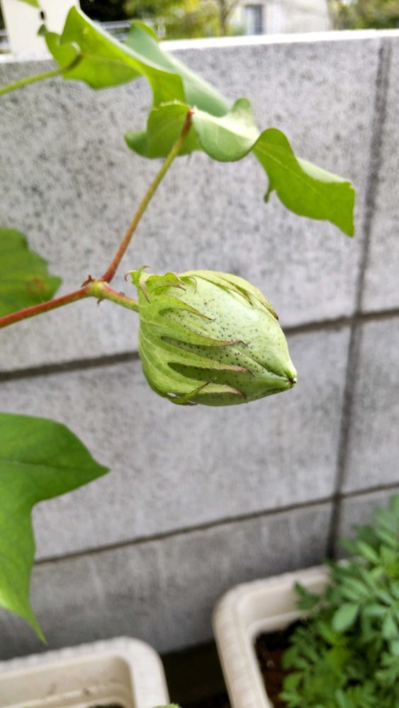ワタのお花が次々と咲き、最初に咲いたお花は、こんなに大きな実になりました。手に伝わる重さも愛おしく感じます🥇☺️