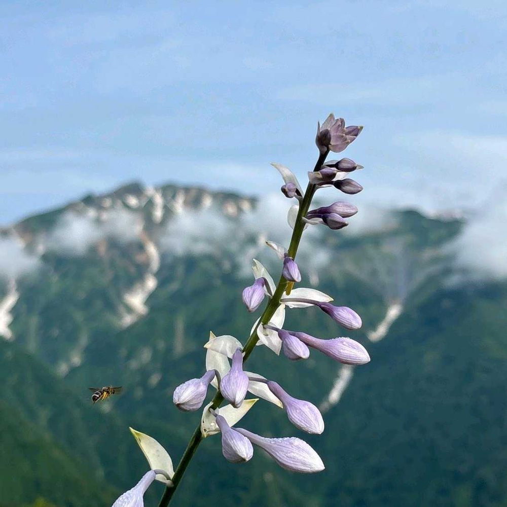 山友からの山便り👀📷️✨山とナメルギボウシ💜の爽やかな風景🏔️で爽快な気分になれました😍🍃