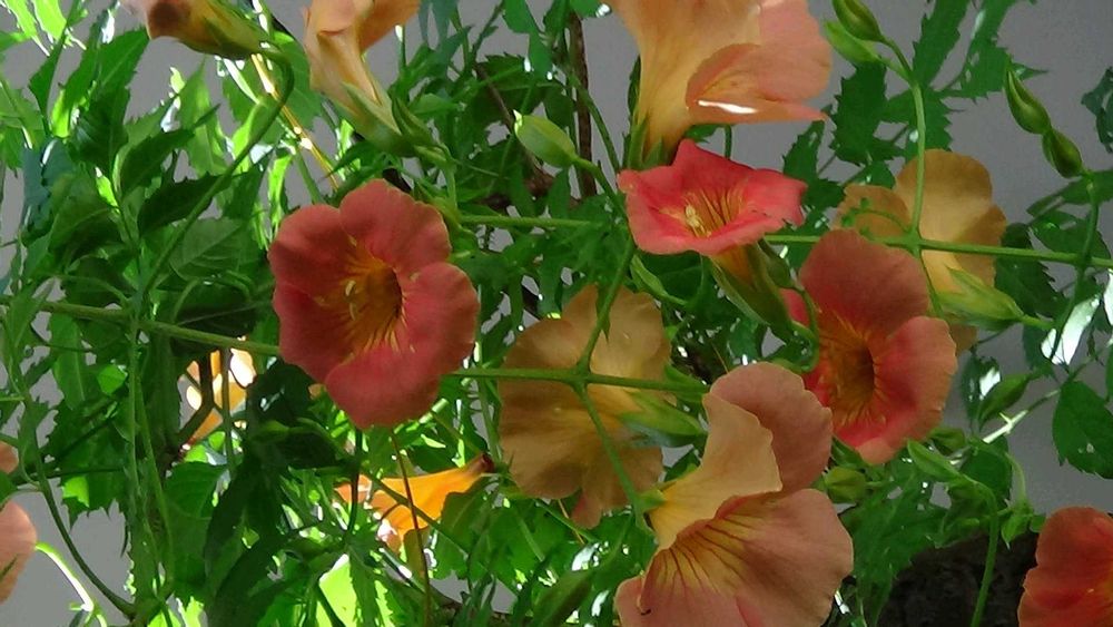 小さな庭のノウゼンカズラの内、房状に咲く花です。