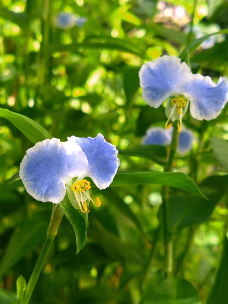 ③④今年も零れ種でメガネツユクサワラワラ咲いてます😊アップで見ると真ん中に3つの花⁉️可愛い❤