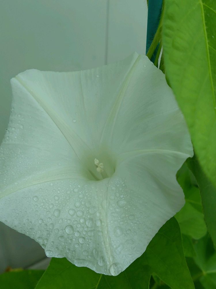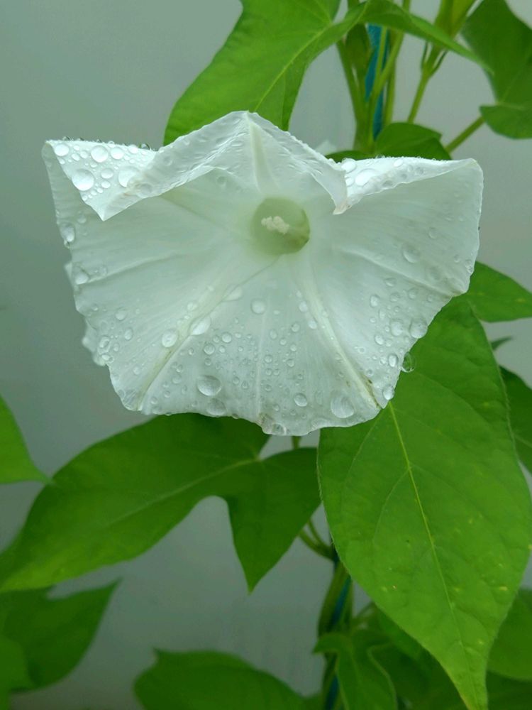 我が家の庭のシロバナアサガオ、今年初めて咲いた朝が雨😢😢😢😜
