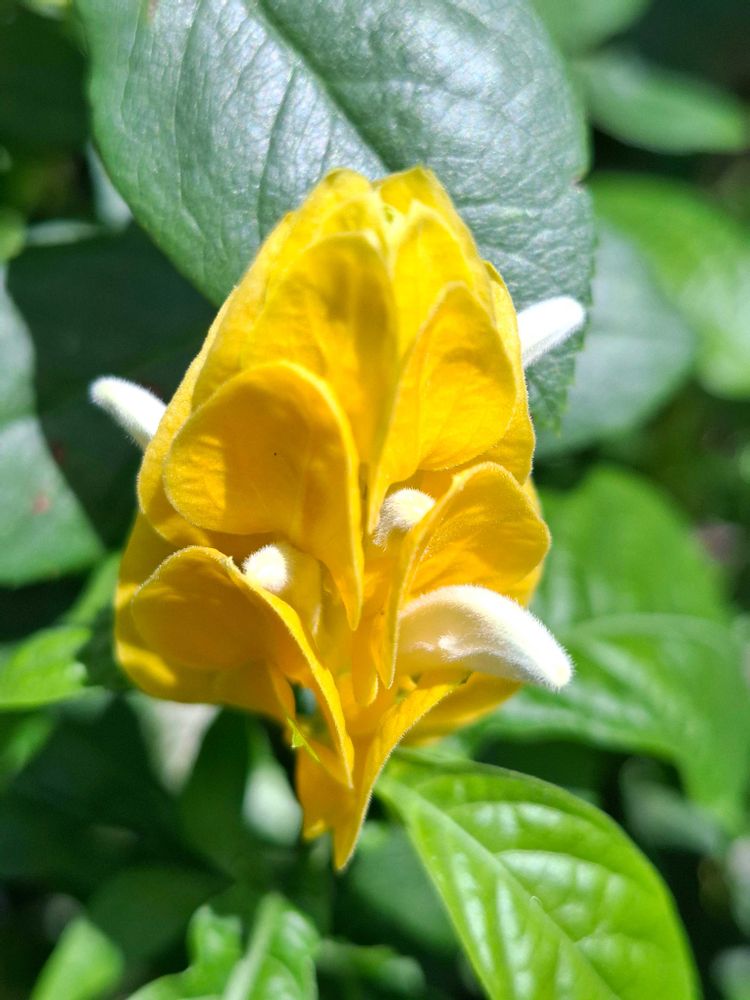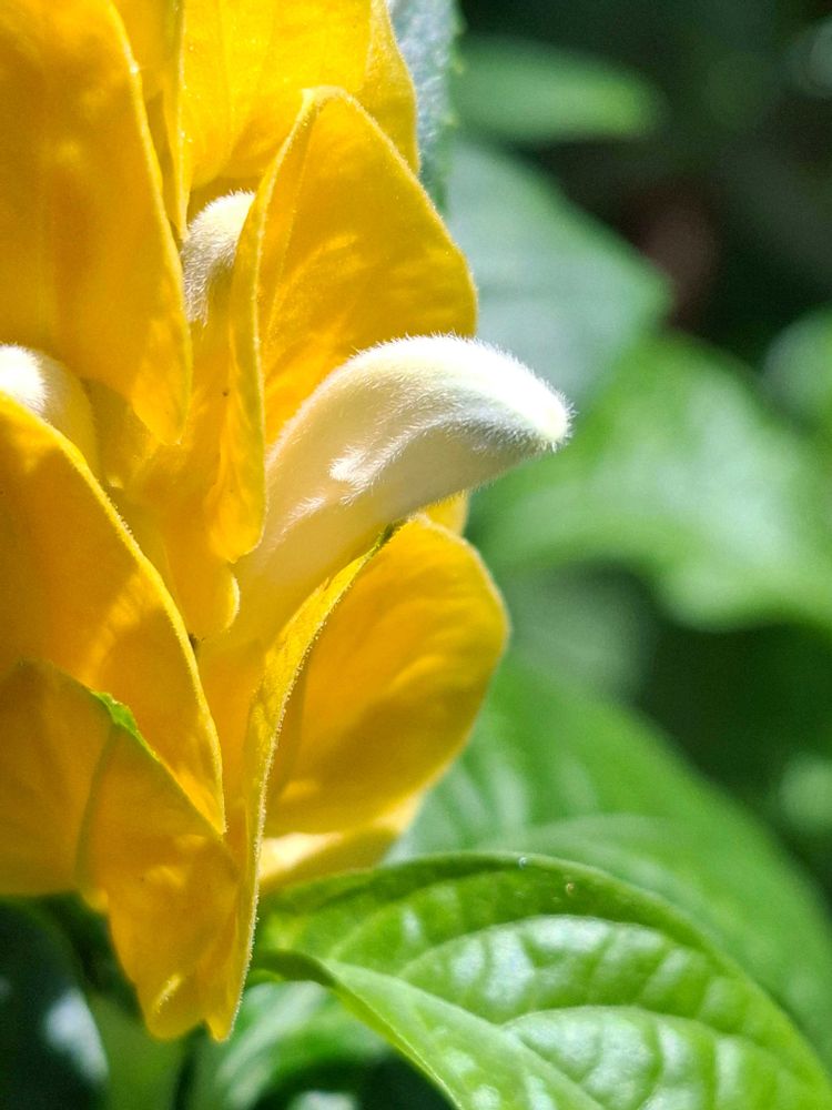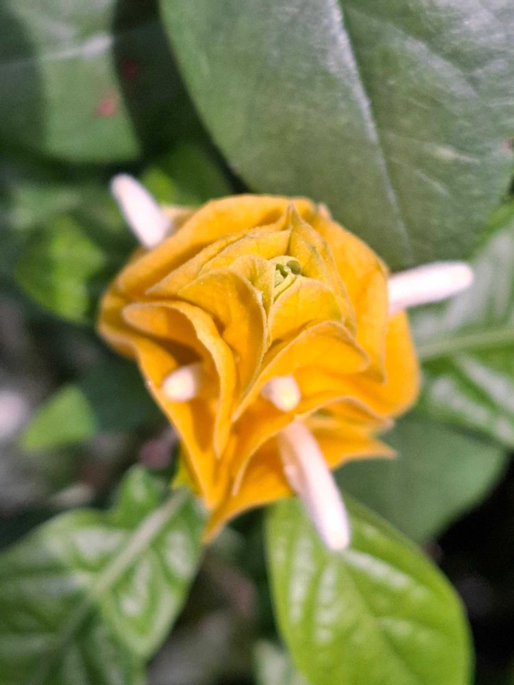 今朝、黄色い苞から白いお花(ツボミ)が出てきました😊