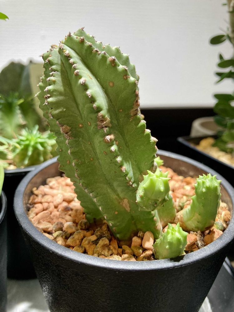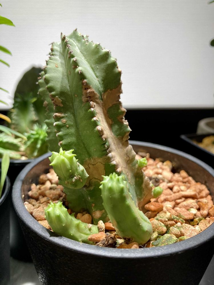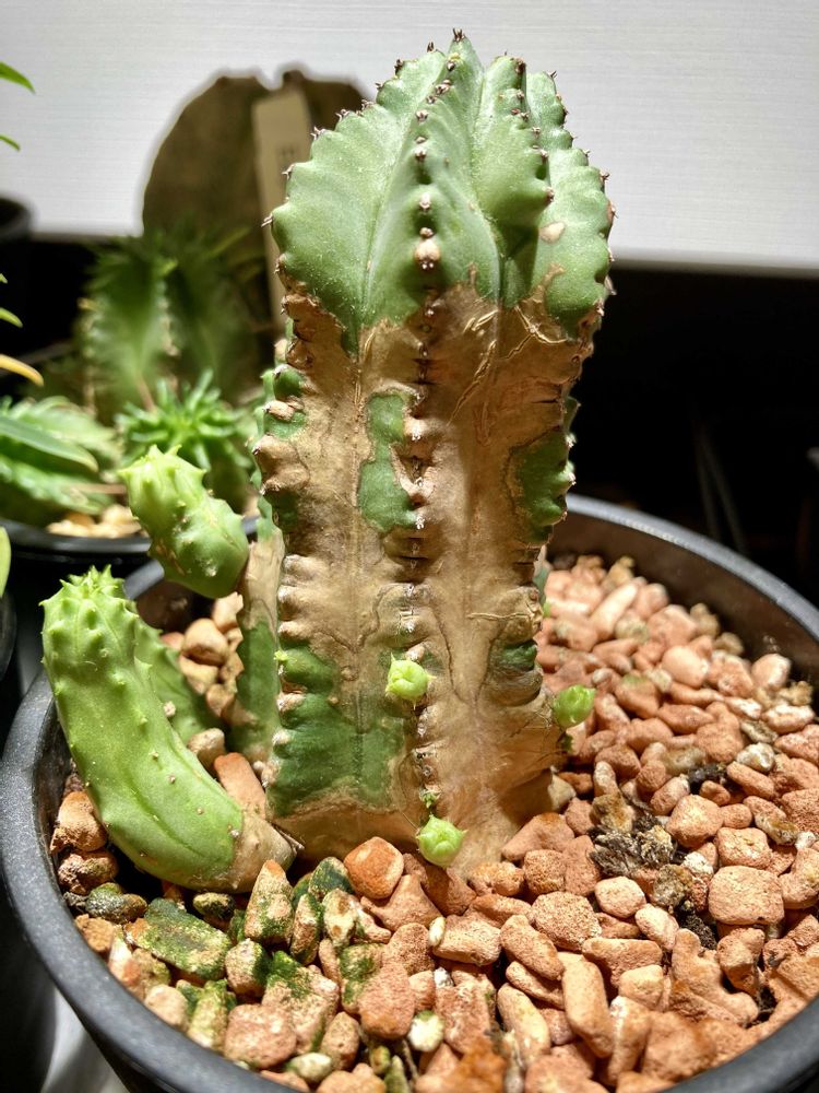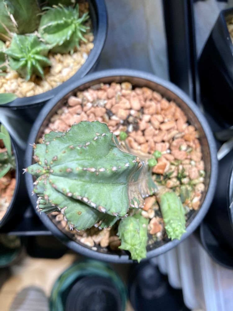 ウチのうんともすんとも隊2😊 ユーフォルビアホリダさん😊 1年近く動きがなかったですが最近、子株を吹いてきました😊びっくりです🫢ハイビスカス🌺久しぶりにつぼみが膨らんできました😊楽しみ😊