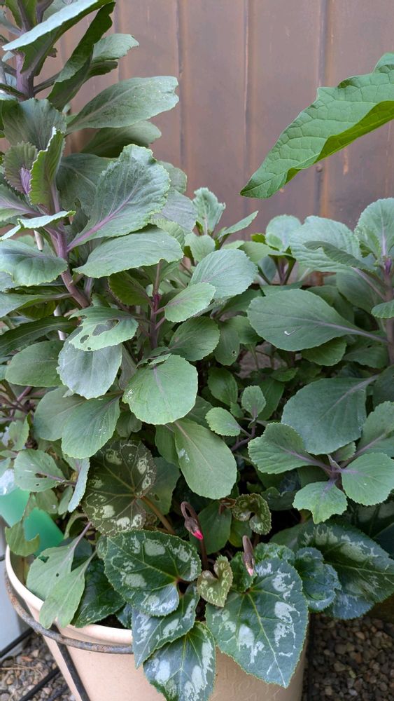 一昨年、葉牡丹とガーデンシクラメンの寄せ植え作ったけれど今、猛暑を乗りきろうとしてるのか仲良く育っているよ🤩