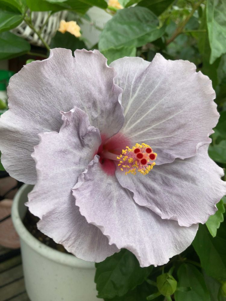 ハイビスカスの🩶この色珍しかですね、また大輪で👍