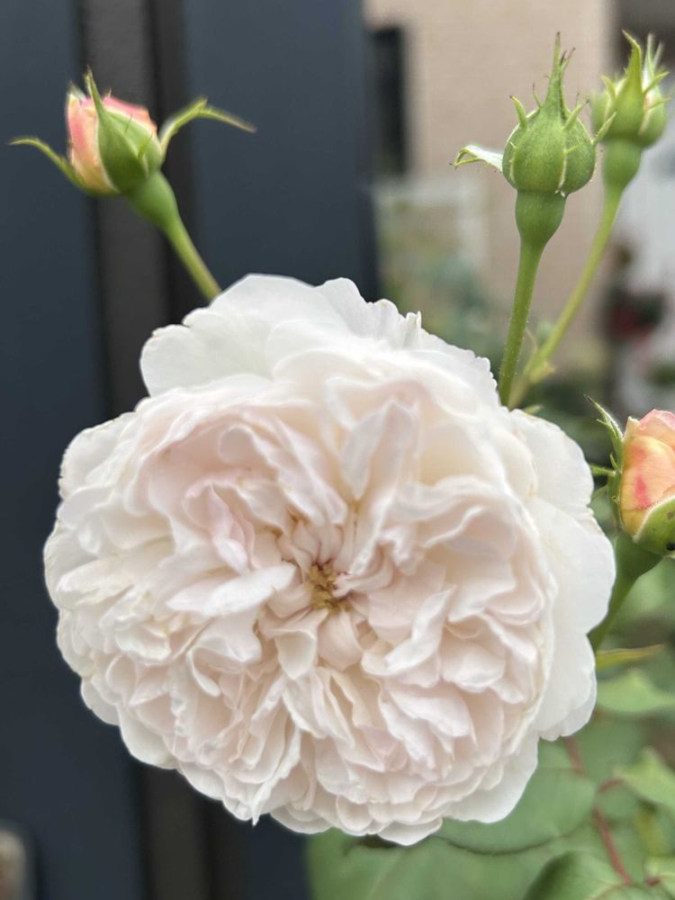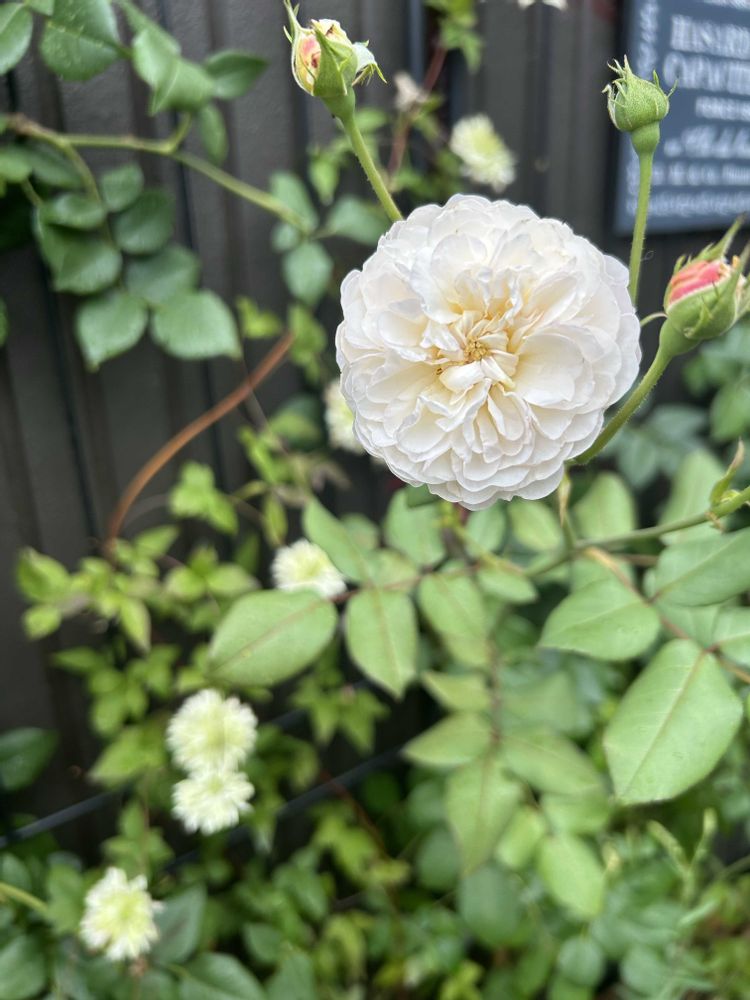 ガレージの壁面のクレマチス白万重と薔薇 オルブラントンランブラーのコラボは2番花の方でした。クレマチスは終わった丸い花殻状態も終わり気味💦まだ2年目だから、年数が経てばもっといっぱい咲いてくれるのか肥料とかなのか。。。🤔