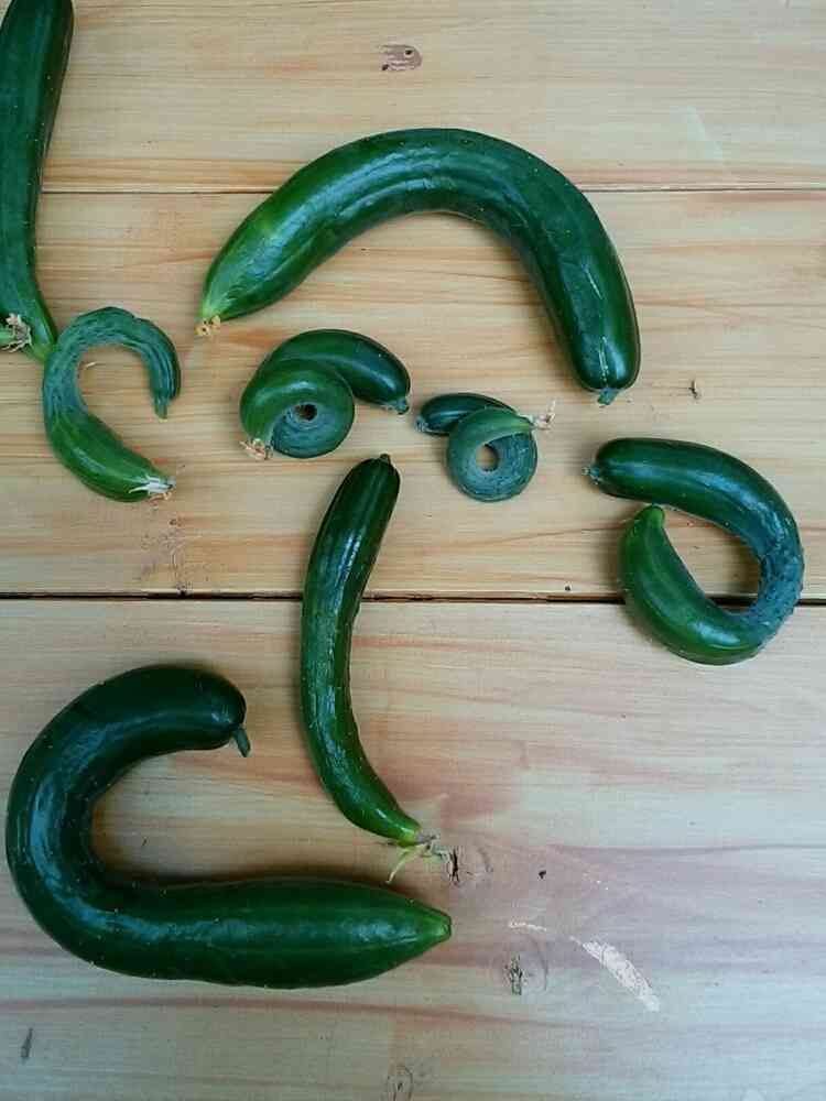 曲がりキュウリでお遊び。誰!?